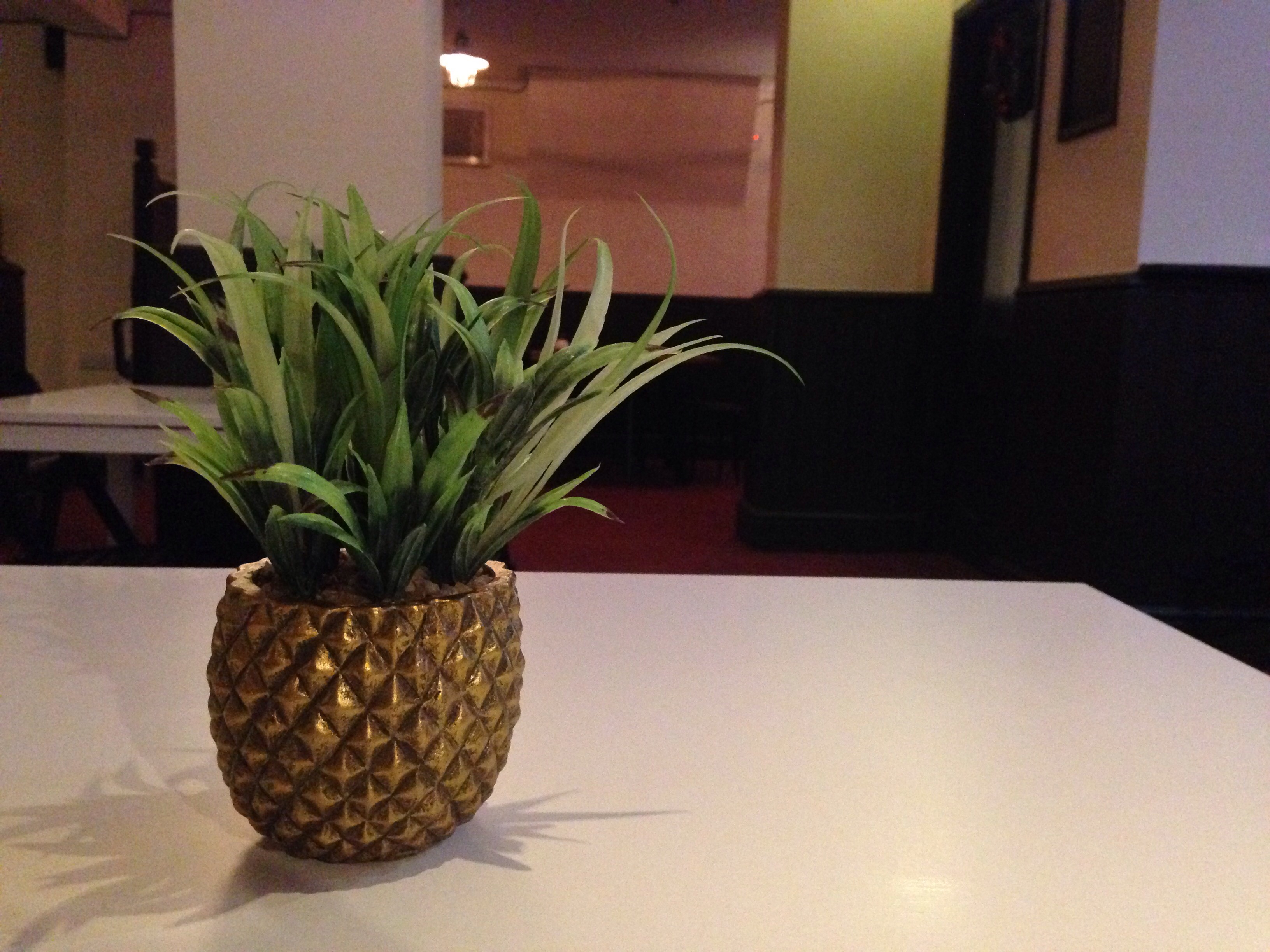 As jazz flute played on the stereo and Greek voices drifted over from another side of the pub, a glance around revealed what looked like miniature pineapples on each table but on closer inspection turned out to be plants within shapely containers.