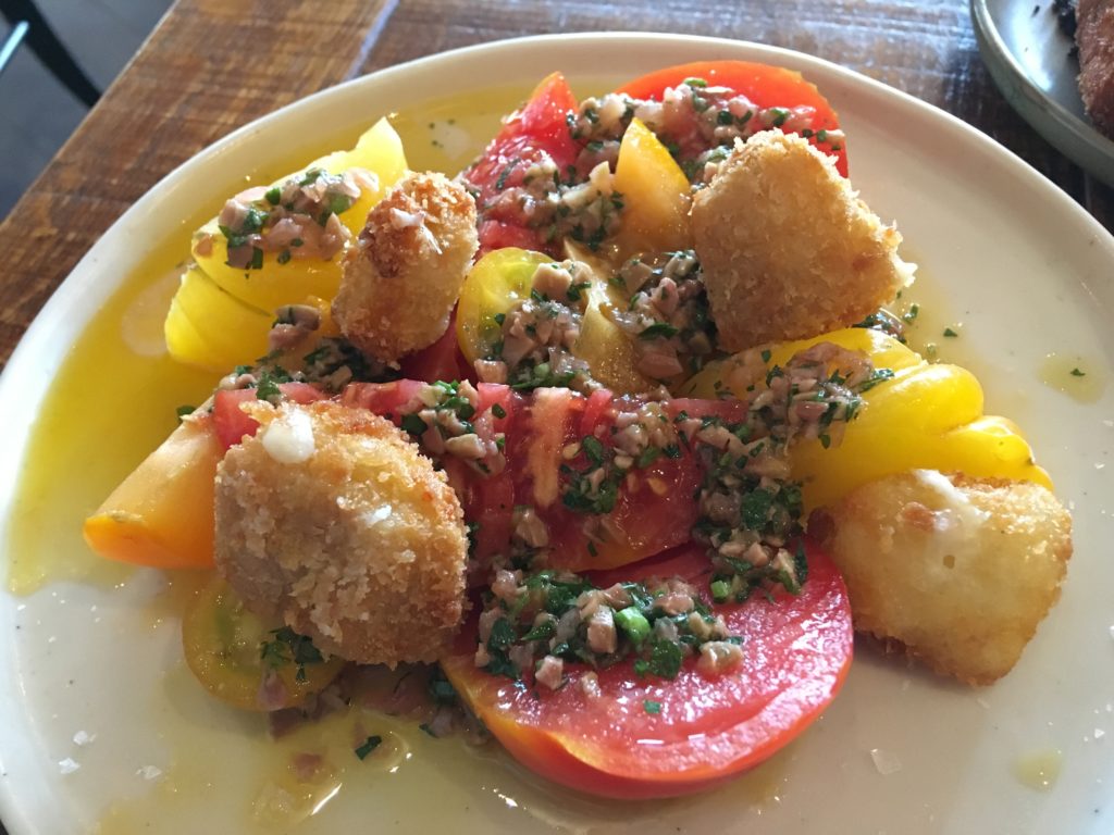 The tomato dish with deep fried ewe’s curd