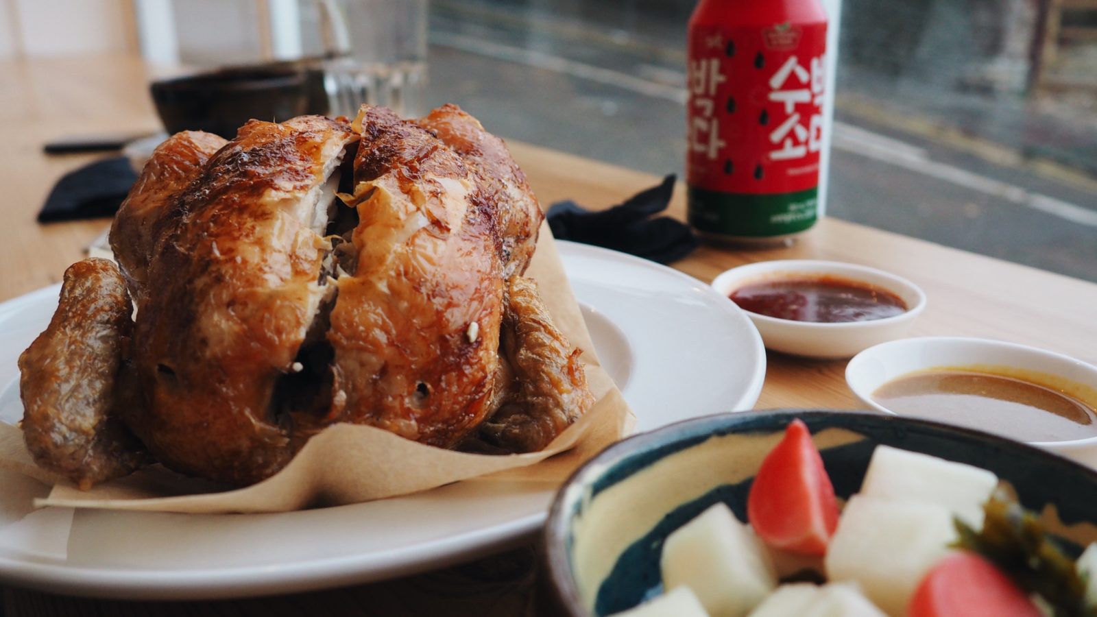The enticing tongdak (£14), a charcoal rotisserie whole chicken, serve as a meal for two; their smell alone able to entice in new customers up from Stokes Croft to this restaurant that was most recently Zitto & Bevi, was the original home of nearby Cafe Kino, and once hosted a pop-up restaurant from the Montpelier Basement supper club team of Elly Pear and Dan Vaux-Nobes.