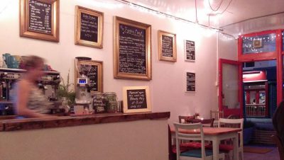 Inside, decoration was chic and understated, with dark furniture and an eclectic collection of prints. The only slight oddity were the slogans printed around the tops of the bar’s pillars: the names of Banksy pieces, the barman explained, and we shared a look of slight bemusement.