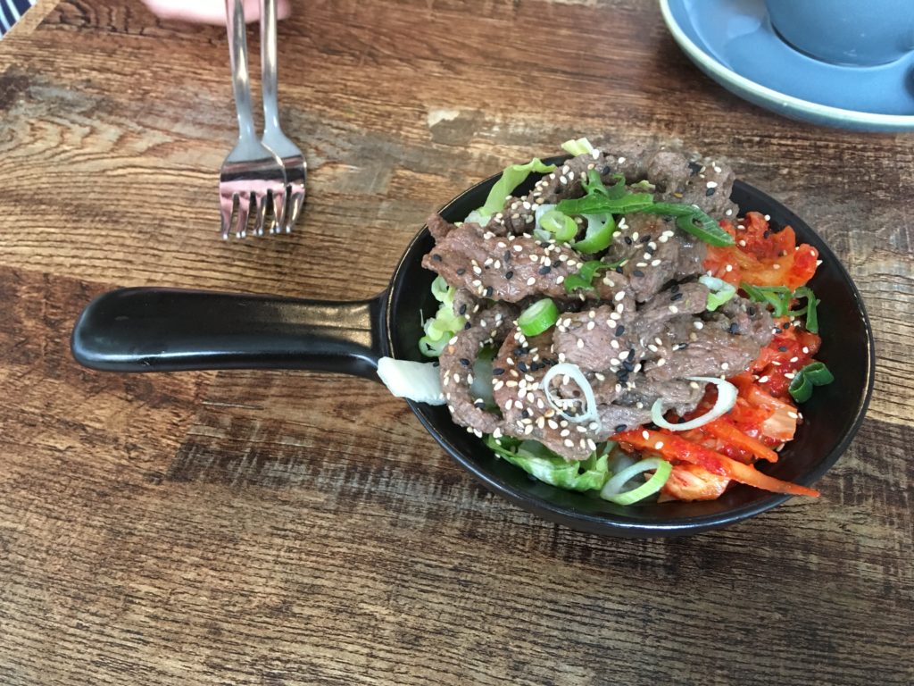 The side comes out rapidly, delivered personally by the chef. The soft pieces of beef have picked up the flavour of a delicious marinade, and are accompanied by a fresh salad and homemade kimchi that is cool and refreshing, with a spicy kick that brings some excitement to the dish.