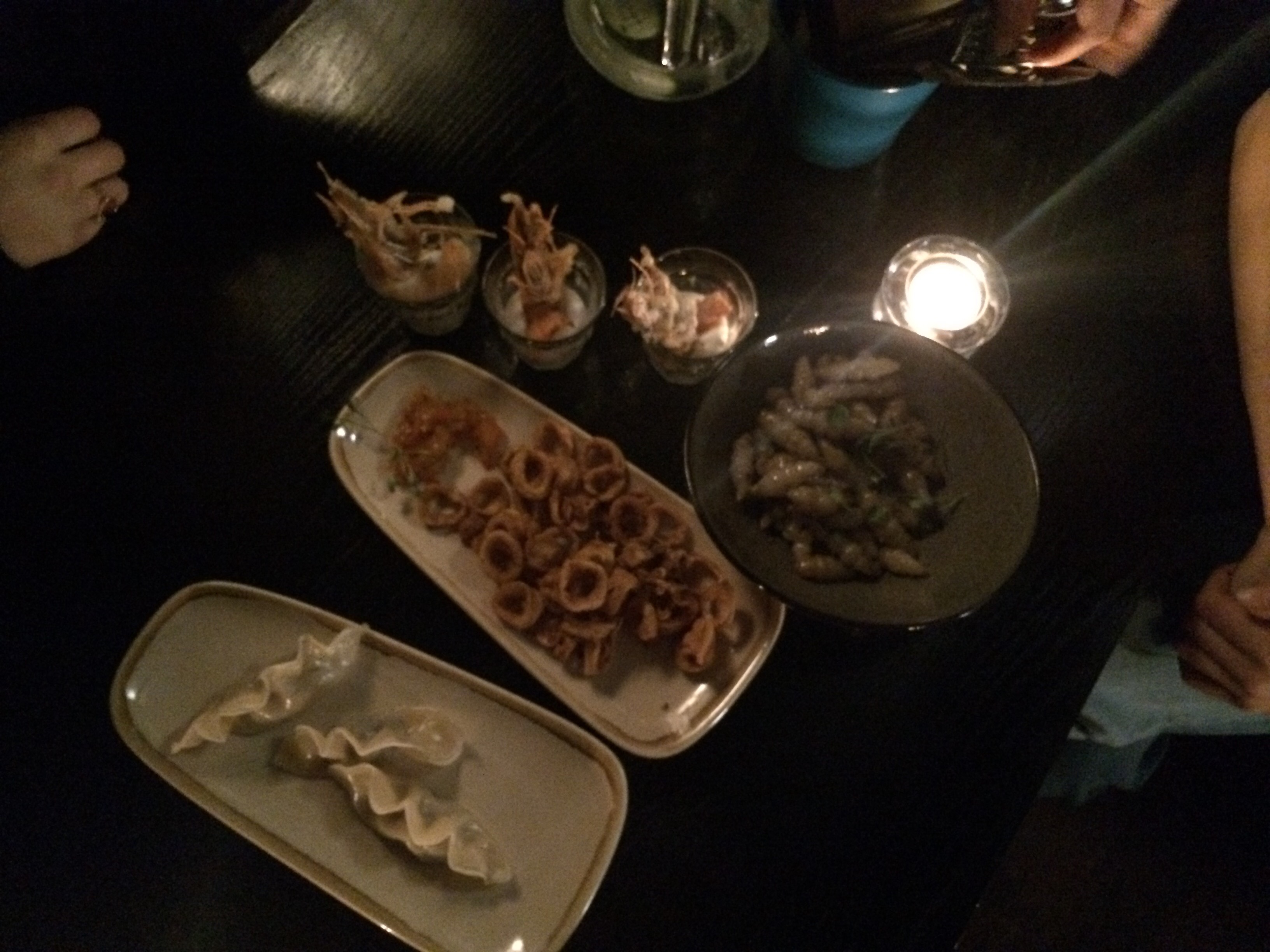 The Bladerunner soundtrack (the theme for the night) seems to control the whole experience: reaching a powerful crescendo as we are welcomed into Edit’s alternative world and gradually quietening as we finally turn our attention to ordering.