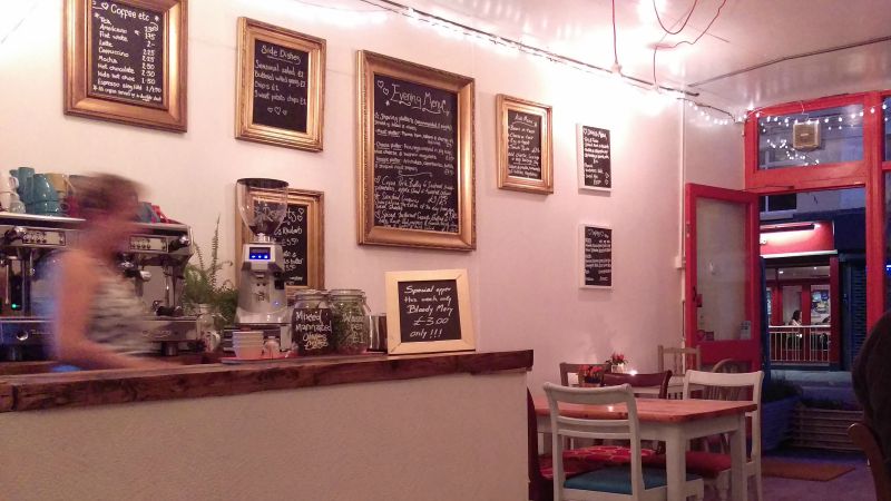 Sitting almost opposite the busy, newly-reopened grocers, exactly opposite the vacuous Wetherspoons (where you can get a pint for £1.99 still. £1.99) and just around the corner from where our esteemed critic lives, the cafe has been doing a decent daytime trade.