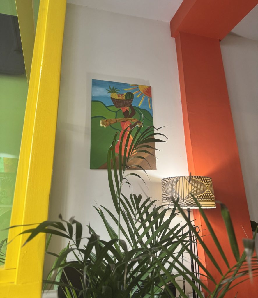 The restaurant was full of lively chatter and giggling children that bounced off the energy of the colourfully painted place.