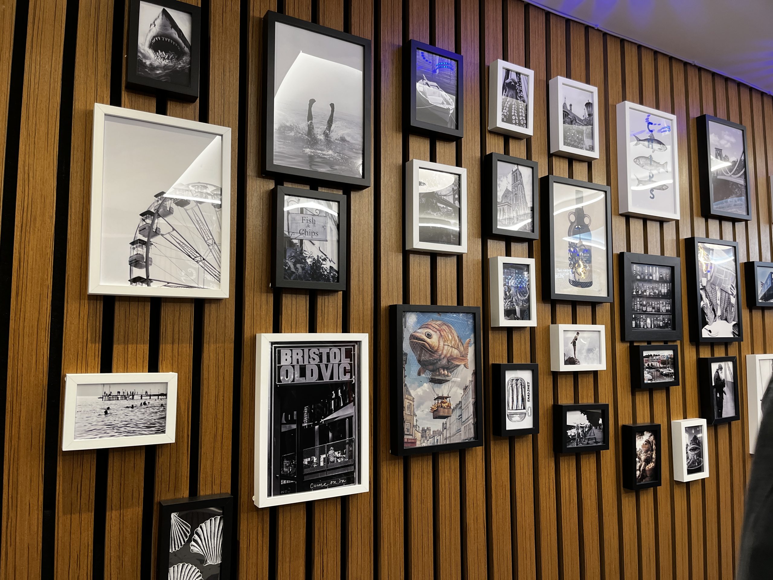 Black and white images of fishes were framed on a wall by the till – photo: Karen Johnson