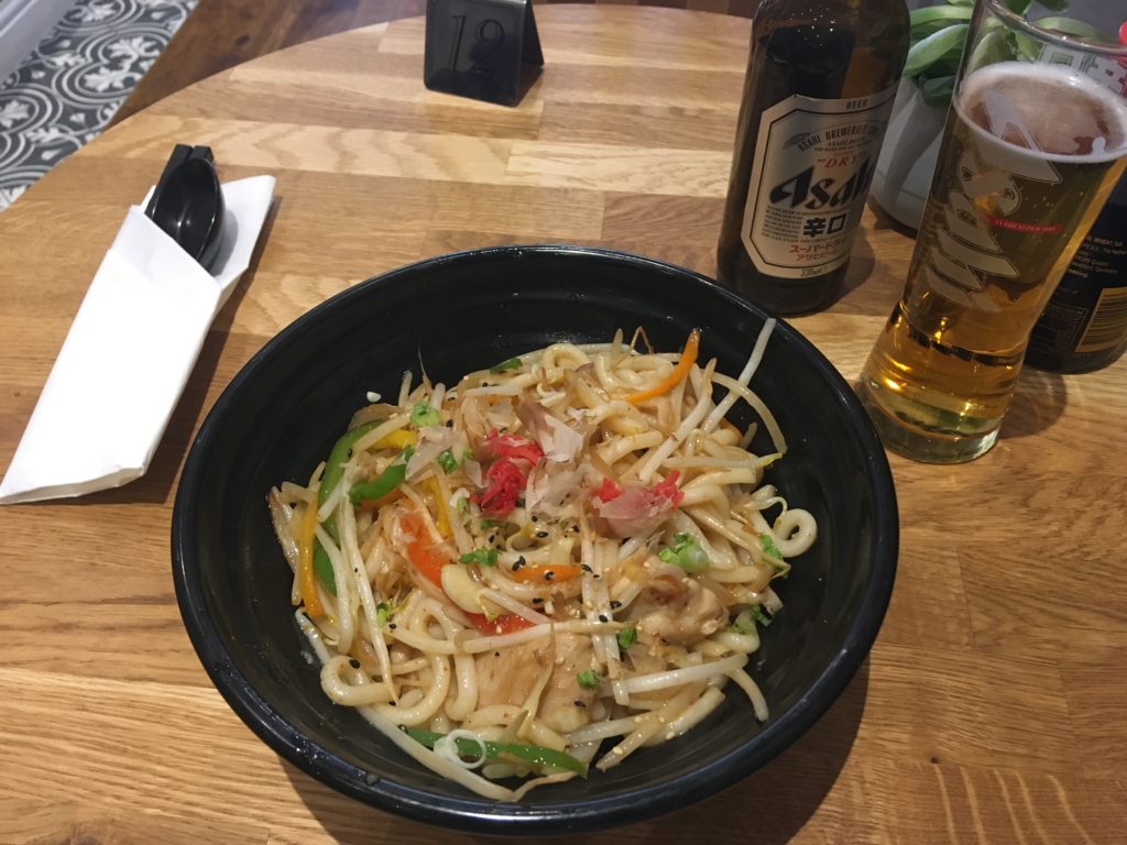 From a set menu (£7.95) that includes chicken katsu curry, a vegan and gluten free yasai shoyu noodle soup, and vegetable gyoza udon soup, I pick the chicken yaki udon and add a small plate of pan-fried pork gyoza for £2.