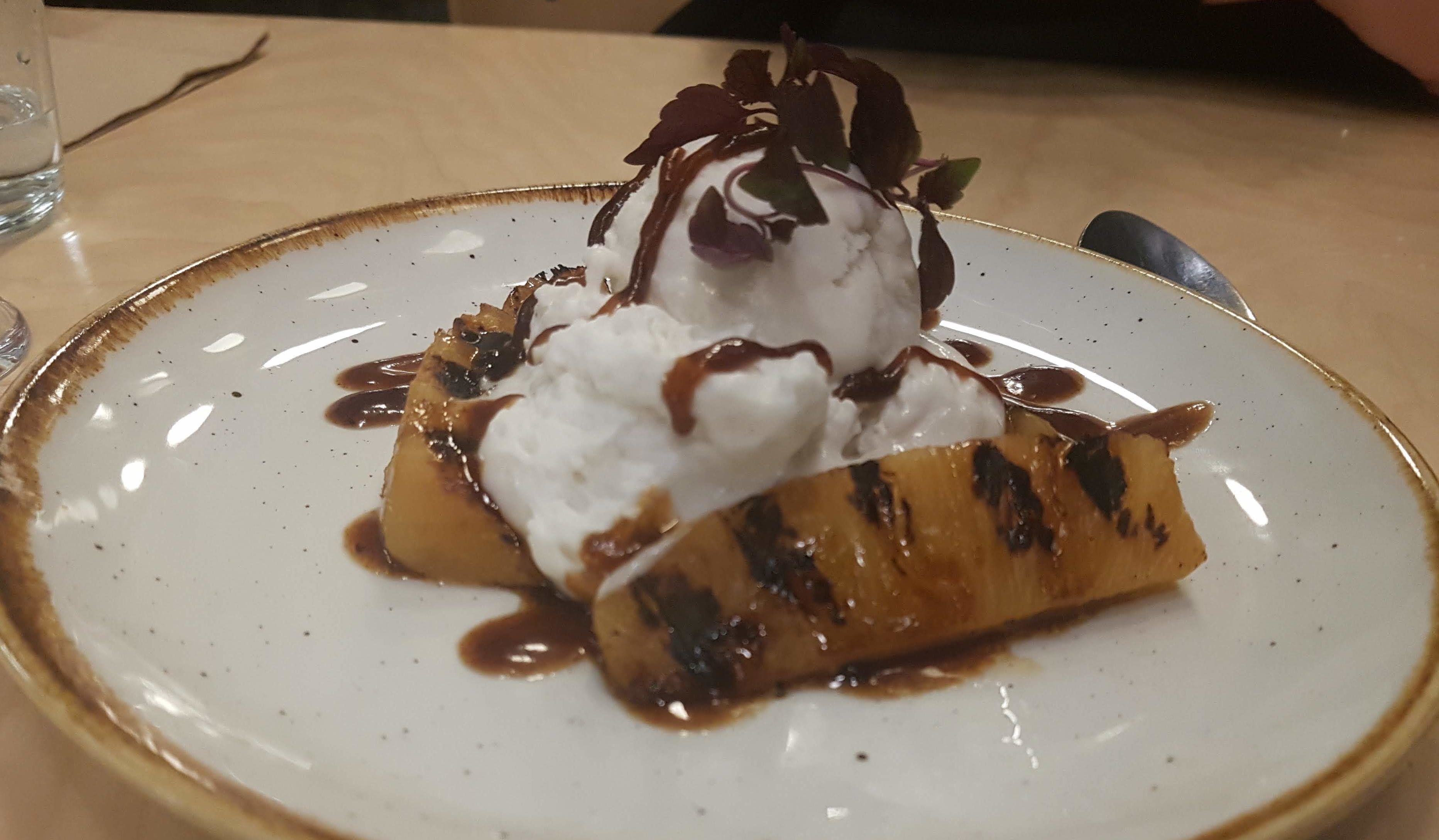 The chosen chargrilled pineapple, with miso caramel and coconut cream (£6) is certainly inventive. The fruit is still warm and juicy, while the hint of miso adds a pleasant tang to the dish, but the combination is overpoweringly sweet – the only slightly disappointing note on an overall very satisfying meal.
