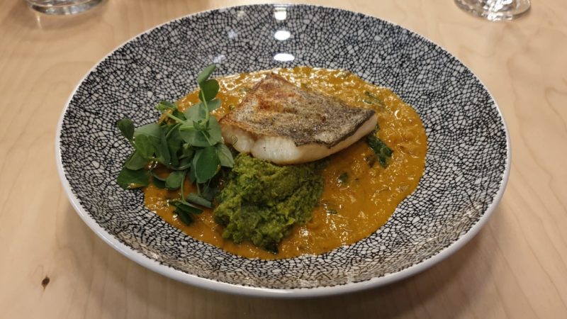 The dish of roast market fish (£18) is hake on our visit, accompanied by shellfish curry sauce and crushed peas. It is another winning combination; the delicate sauce and minty peas complementing the flaky, flavoursome fish.