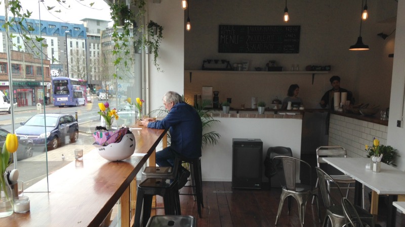 Kale & Kettle offers one of the best people watching opportunities on Stokes Croft with a panoramic vantage point stretching from the 51 02 building to the top of City Road.