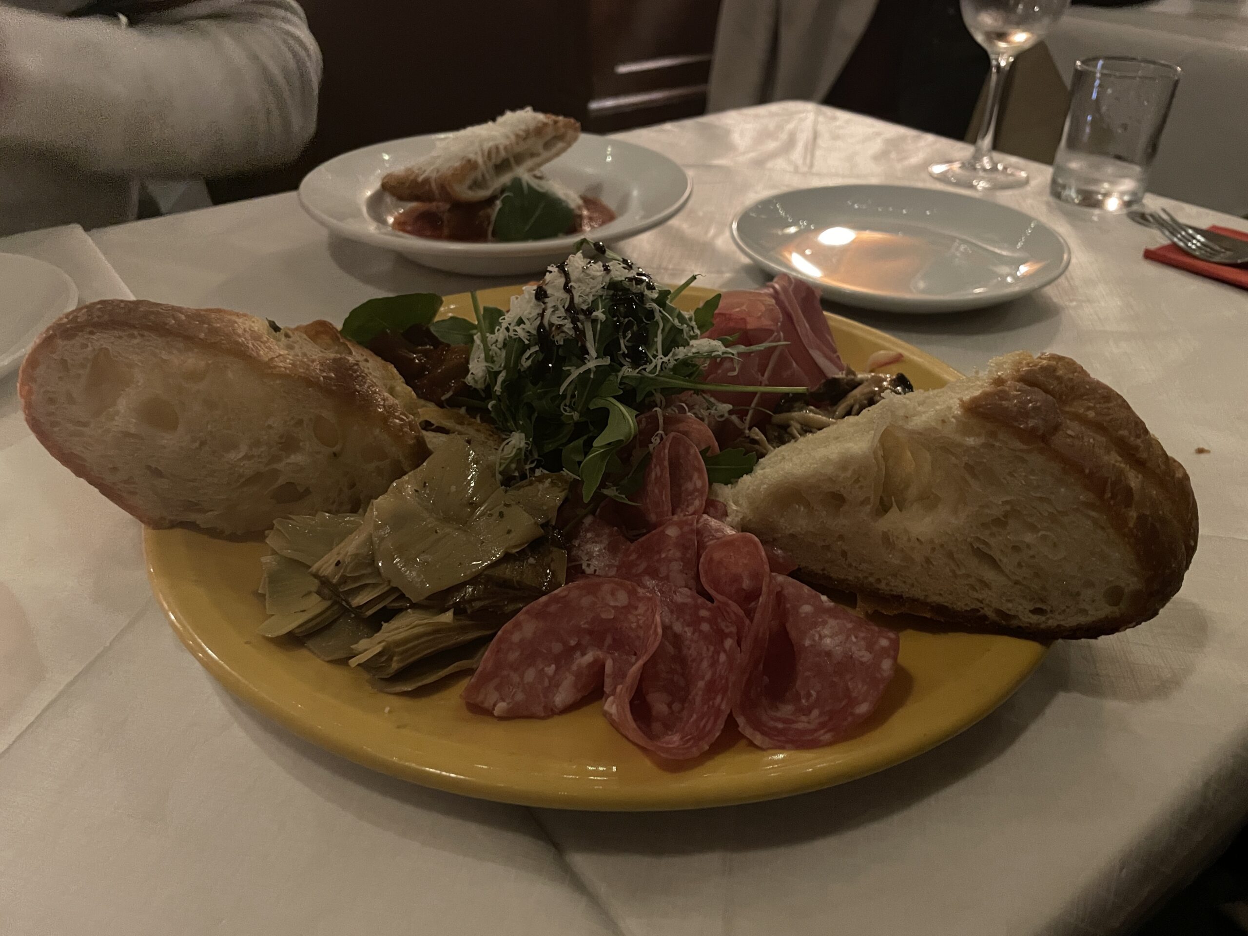 The antipasto sharing platter (£12.50), a classic opener in the Italian dining ritual, is almost as well populated as the photo wall. It’s hard to mess up an antipasto unless you’re venturing into the realm of low-budget Lunchables, and thankfully, the offering at La Campagnuola stays true to authenticity. I was visiting with my Dad, who instantly felt right at home due to his own Italian lineage and the fact that his ideal starter is a platter full of meat.