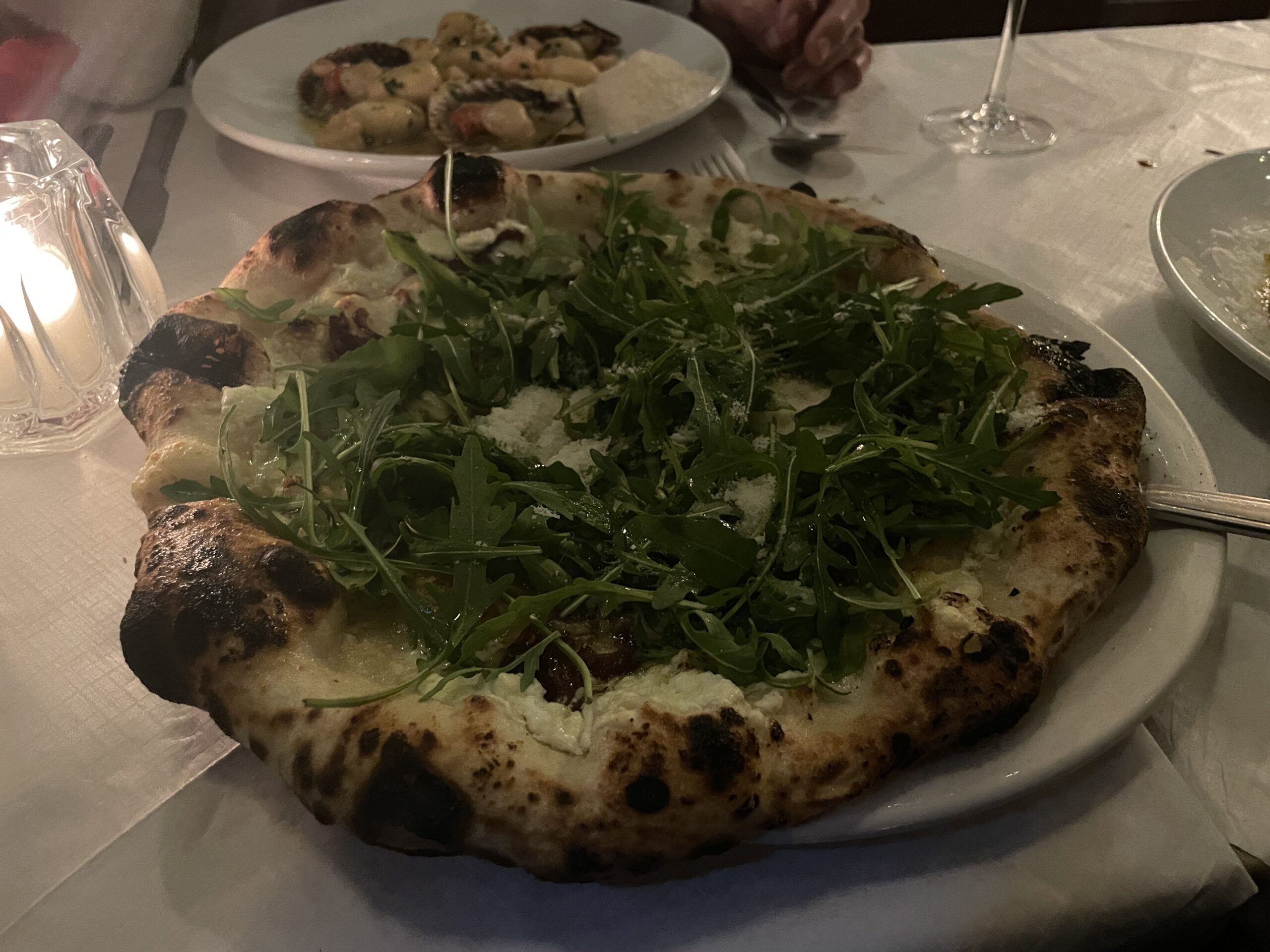 Sadly the porchetta bianca pizza was not shown the same care and attention that we were. The dough’s chewy, gratifying texture was overshadowed by the imbalance of flavours, with the onion’s dominance leaving little room for the pork to showcase its potential. If it were an onionetta bianca it would be spot on, but I wouldn’t have ordered it.