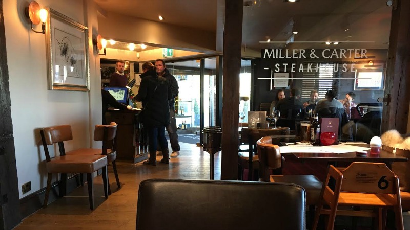 It’s a Wednesday afternoon and it is buzzing – already a haunt for staff dos and old chums to catch up. Christmas has come early at Miller & Carter, where the dark wooden interiors have been blinged up by baubles, with twinkling lights reflecting off the masses of glass and where Christmas classics play softly in the background.