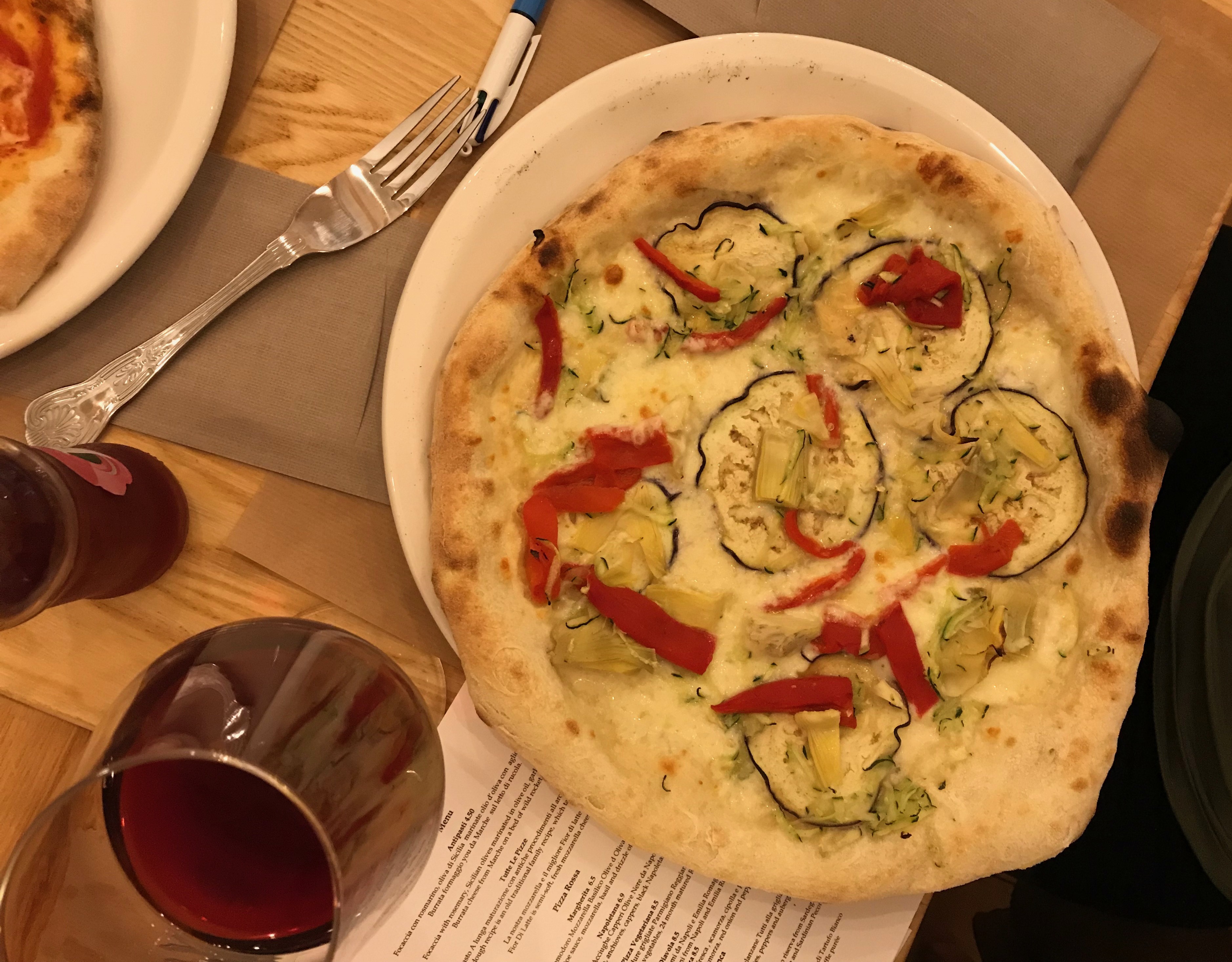 An ortolana pizza (£8.50) – mozzarella, grilled Tuscan artichokes, courgettes, peppers and aubergines