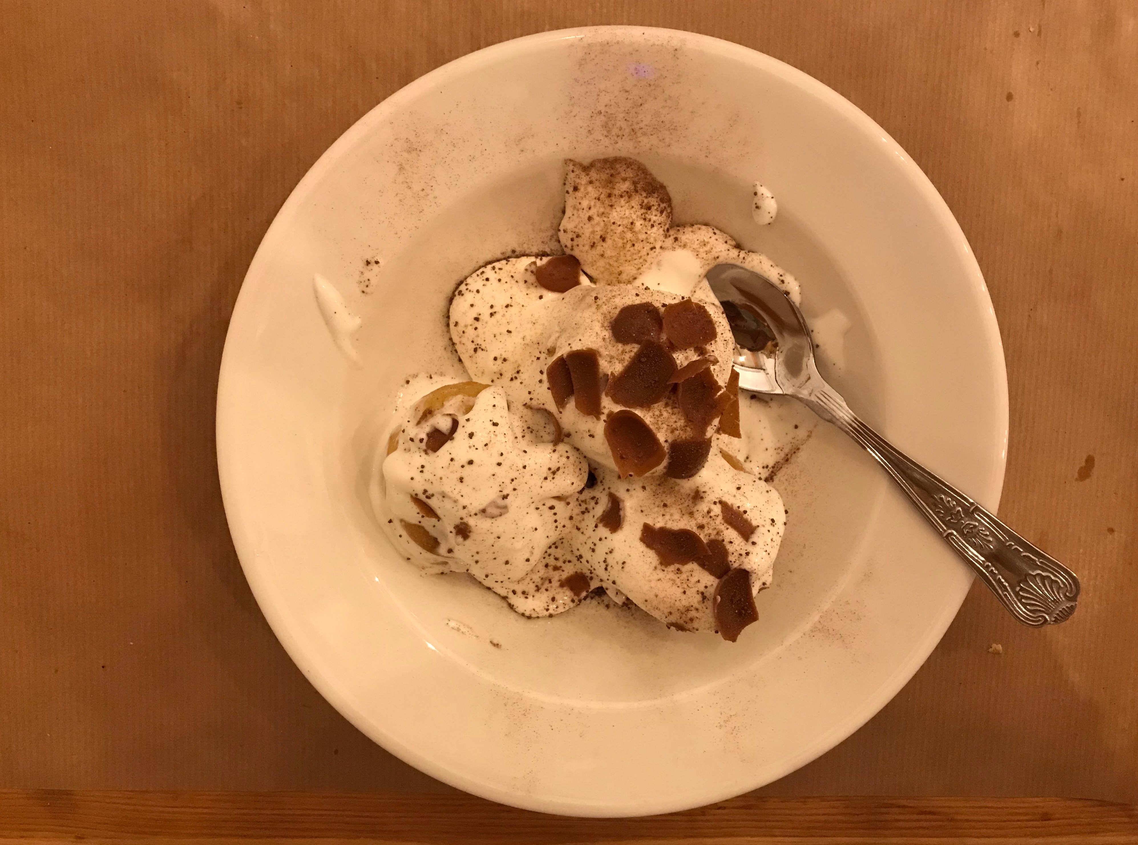 While Mersina and her sister Lois enjoyed their Kinder eggs, the profiteroles (£5) filled with chocolate and pistachio cream were a deliciously decadent way to end the meal.