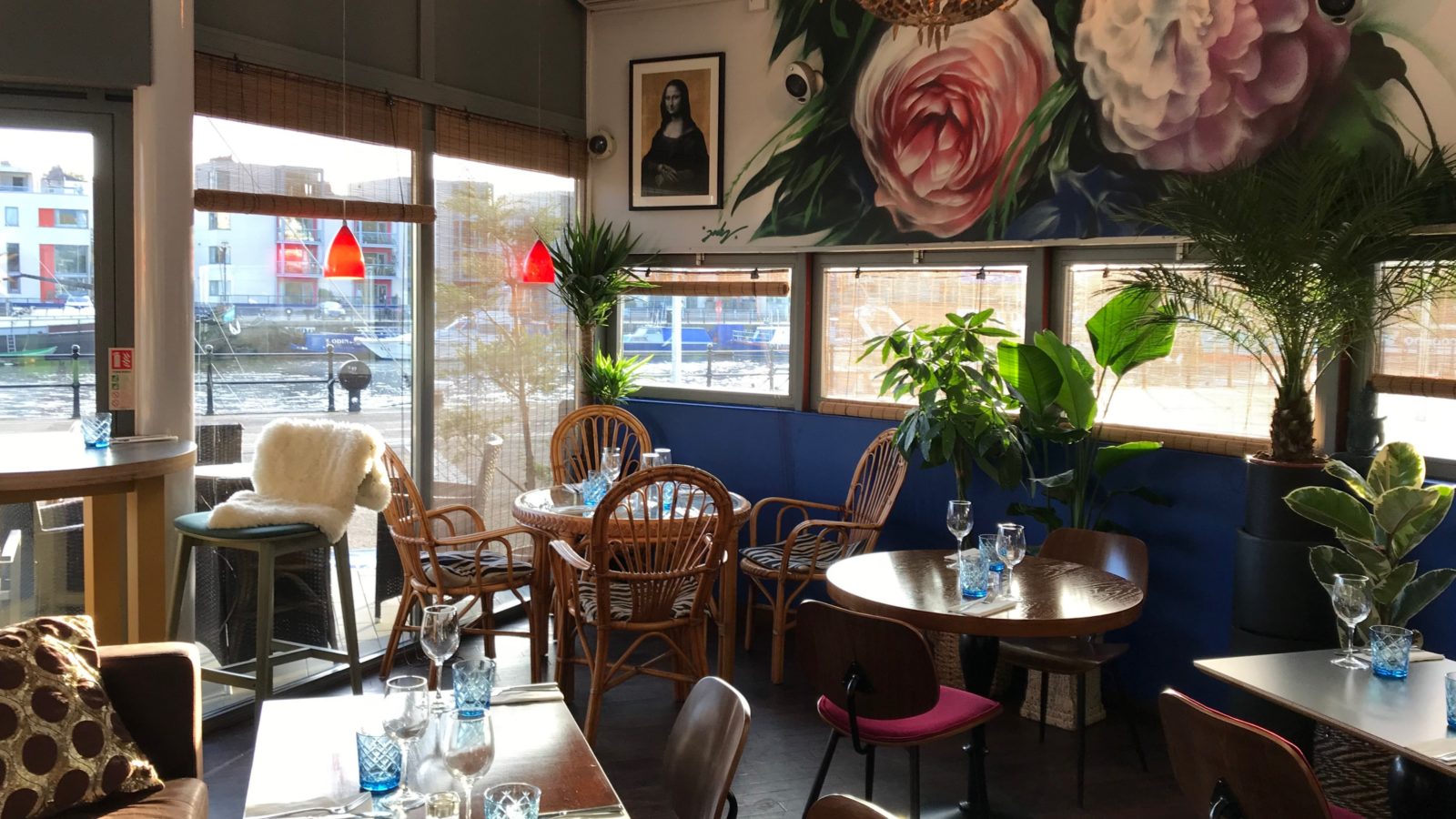 Dozens of plants cascade down the walls and ceilings in one corner of this building that had a huge selection of toys when it was Caffe Gusto in a previous incarnation, with a colourful mural of roses by Bristol graffiti artist Jody to add to the theme.