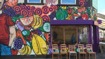 Toot and Come In offers Egyptian and Middle Eastern cuisine and, despite the weather, was serving a steady stream of customers. Two friends sat by the window while a tradesman waited by the counter for his order.