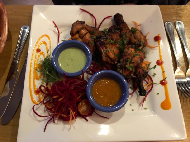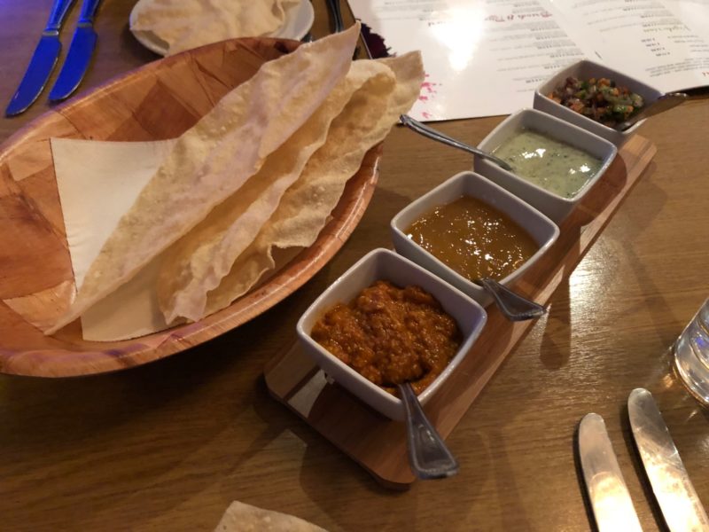 Before we even considered our main course options, we were offered complimentary poppadoms with a selection of very tasty dips and dressings.