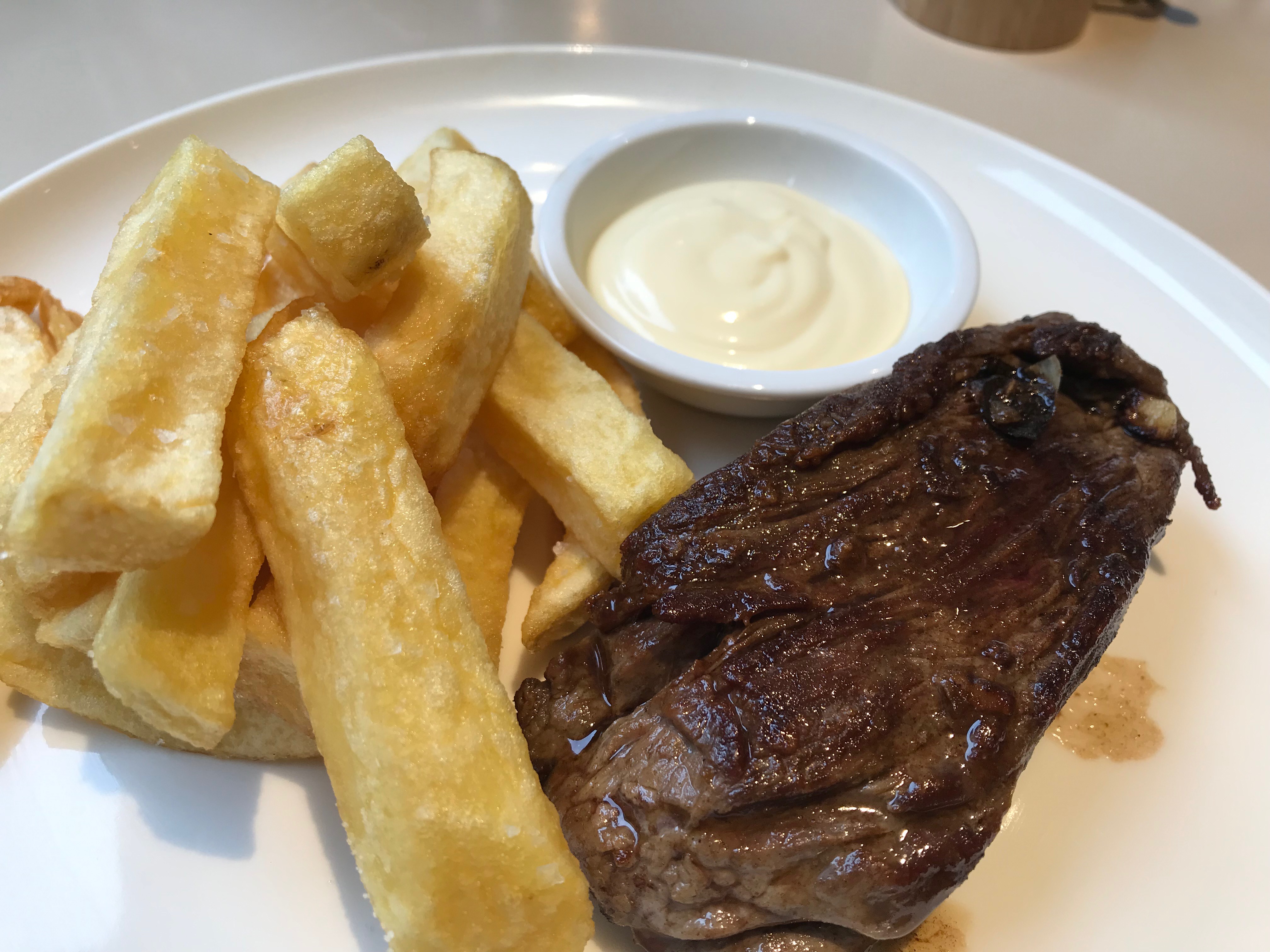 A 250g bavette steak (£15) was served with triple-cooked chips even more satisfyingly crunchy on the outside than the squid, with this time a pot of aioli to dip them into.