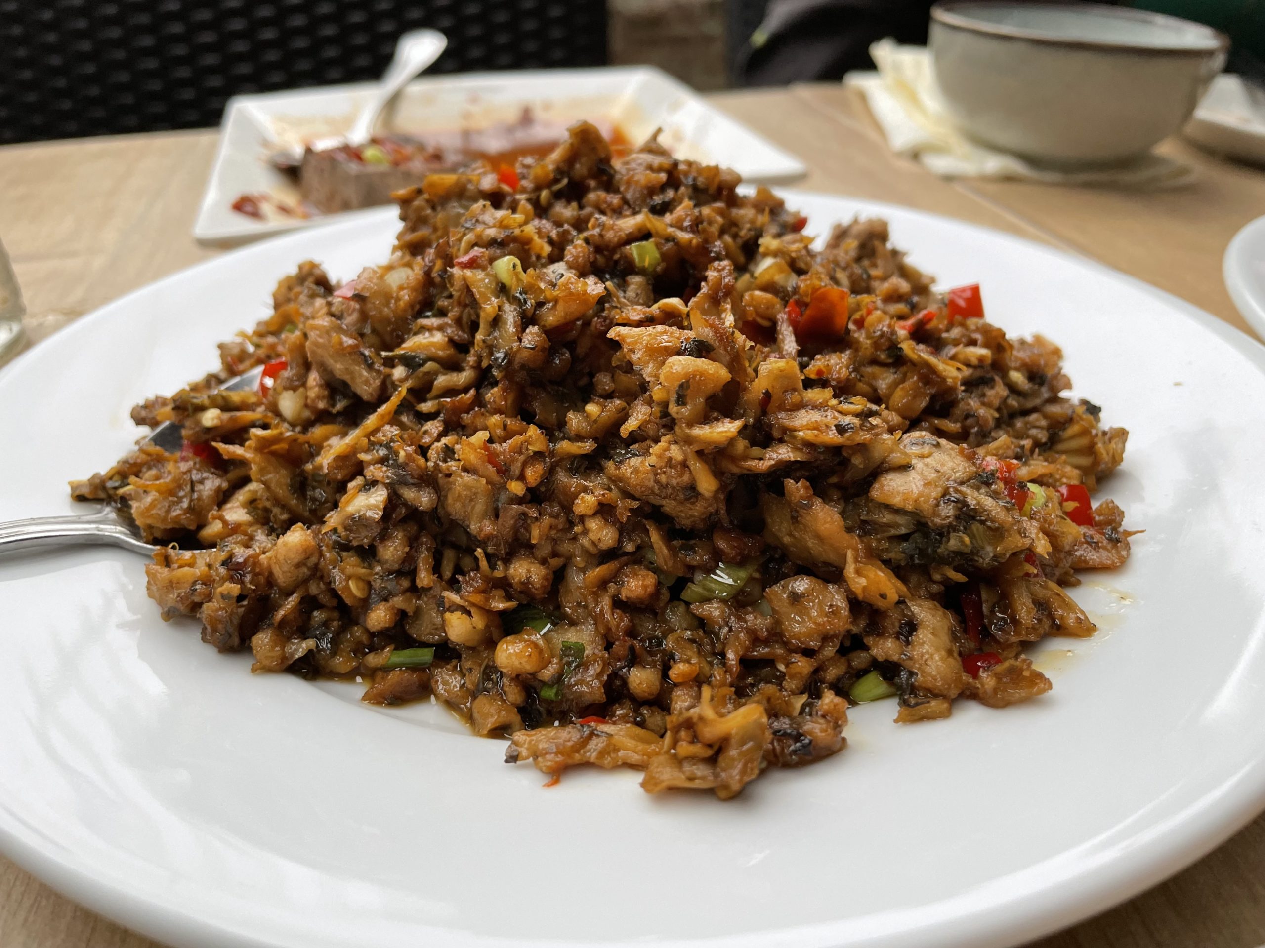The tofu skin (£14.80) is served in a hot bowl, and much to our surprise is peppered with strips of pork. Our attempt to order a delicious vegetarian main – thwarted. At first glance it appears mostly a noodle dish – but wait! They’re not noodles. The thinly sliced strips are in fact the tofu skin themselves. An incredibly satisfying discovery as the tofu skin had a fantastic bite to it, akin to an al-dente tagliatelle. The chew, backed by bountiful spice and umami is a delectable combination, and we can’t keep ourselves from going back for more. It’s a good job the portion sizes are so liberal.