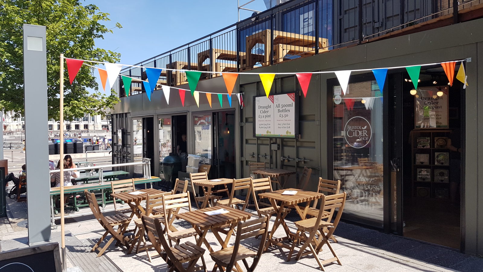 The Wapping Wharf shop has a prime location within two converted shipping containers on Gaol Ferry Steps, with popular cider tasting events hosted, an outside terrace and an online shop.
