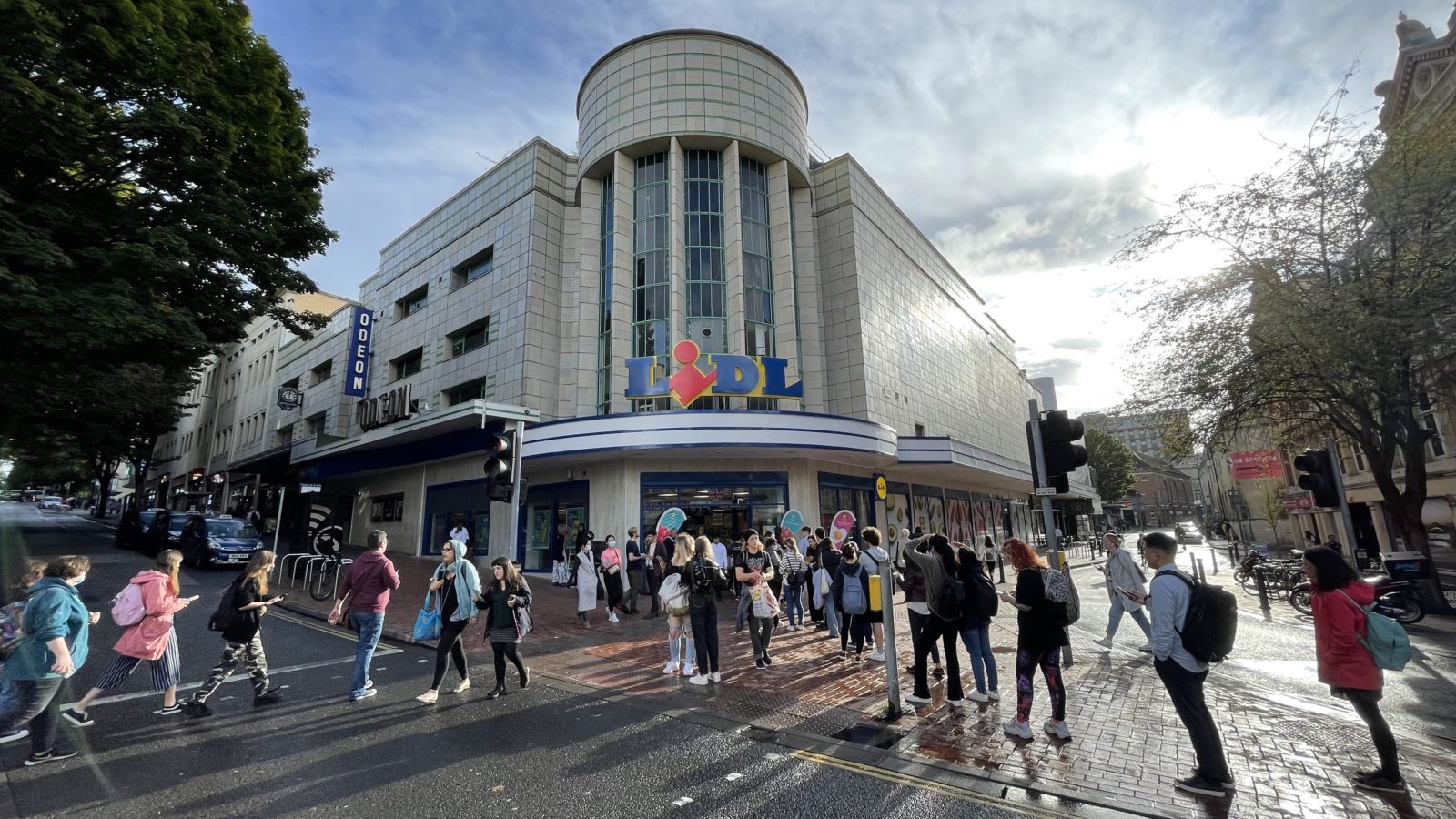 The former grand foyer of the Odeon has now become a Lidl supermarket, with queues stretching out of the door on its first day of opening on Thursday.