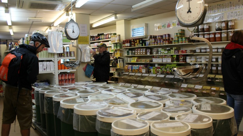 “The ethos of the shop is to limit the use of packaging to its nth degree,” Tim explains. “People scoop what they want or what they need per day or per week, rather than buying everything as packaged products and throwing all the packing away.”