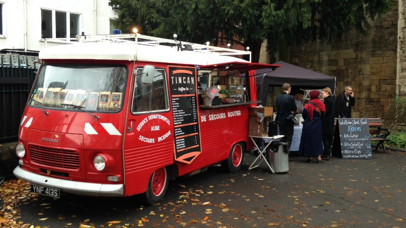 Tincan Coffee Co. is parked up in a former French fire truck with flashing lights and sirens still intact, serving teas, coffees and iced lattes. You might recognise them from the first episode of this series of The Apprentice which featured two more of their trucks.