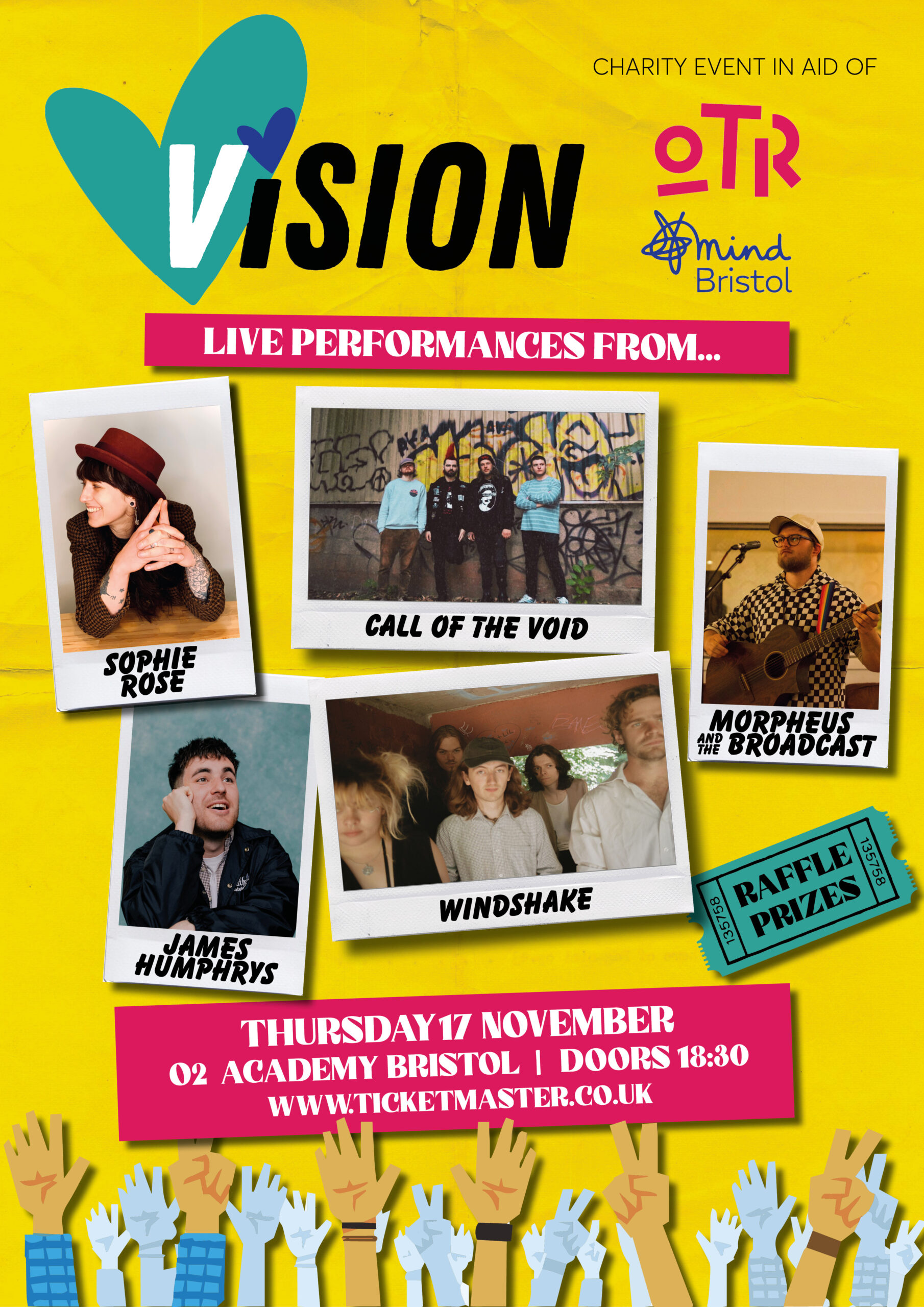 A night of psychedelic-funk-pop, alternative Indie, upbeat funk-filled dream pop, punk rock and country is coming to Bristol’s O2 Academy all in the name of charity. Five bands are performing for £5 at a one-off event called VISION which will see a mix of local talent clubbing together to help raise funds for Mind Bristol and OTR (Off The Record).