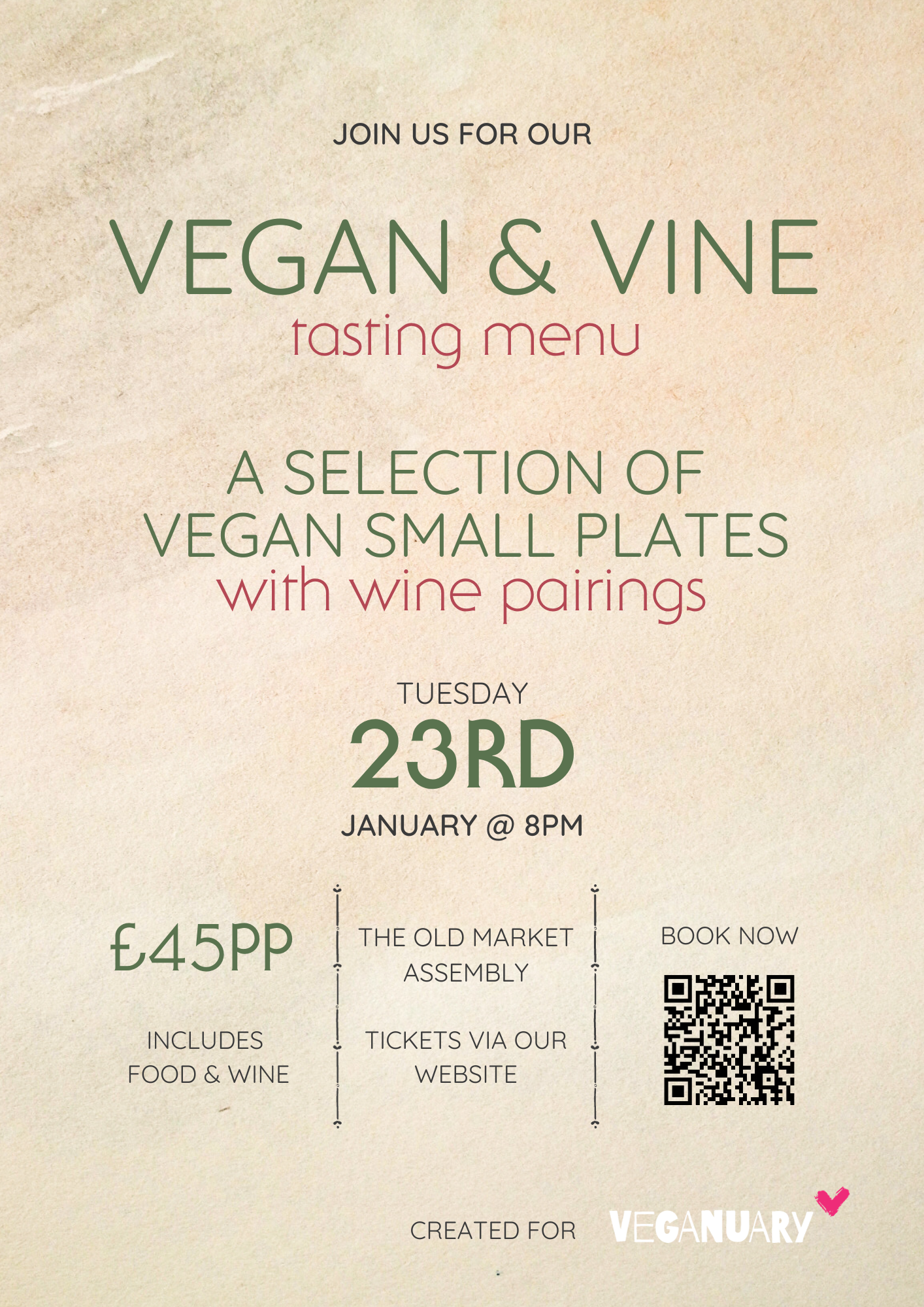 Tuesday: Vegan and Vine tasting menu, Old Market Assembly