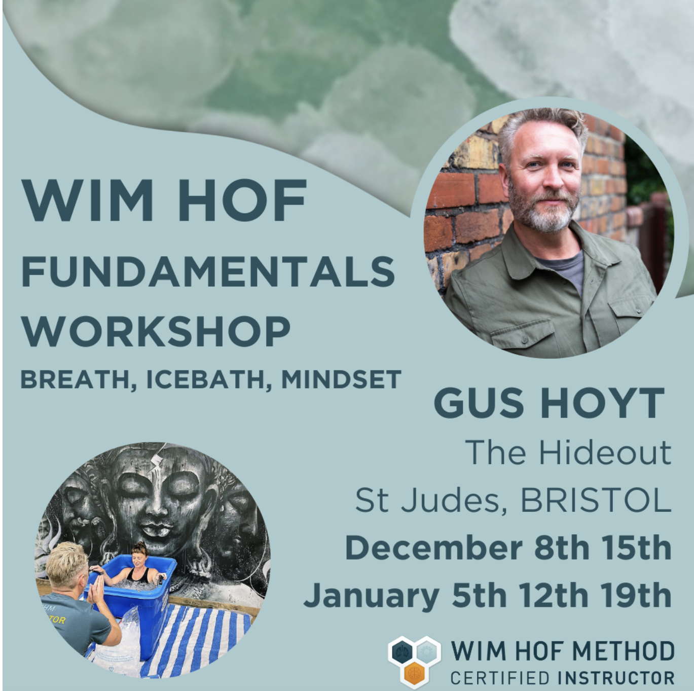 You’ll dive into the Three Pillars of The WHM: Breath, Cold, and Mindset, as well as discovering the scientific basis and how to implement them into your daily life. Gus is also a Functional Breathwork Coach and a Conscious Breathwork guide and incorporates this to his workshops.