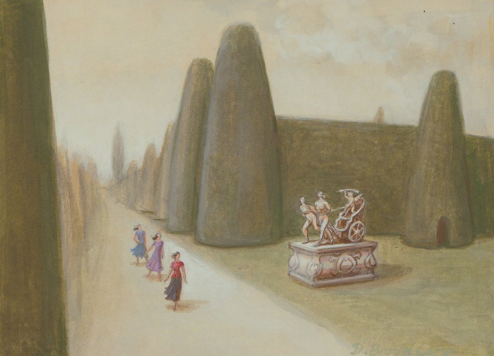 An exhibition by Bristol artist Dan Broadley of drawings, gouaches and oil paintings of figures in imagined ancient landscapes, ruined gardens, Chicago stations, old cranes and fairground rides.