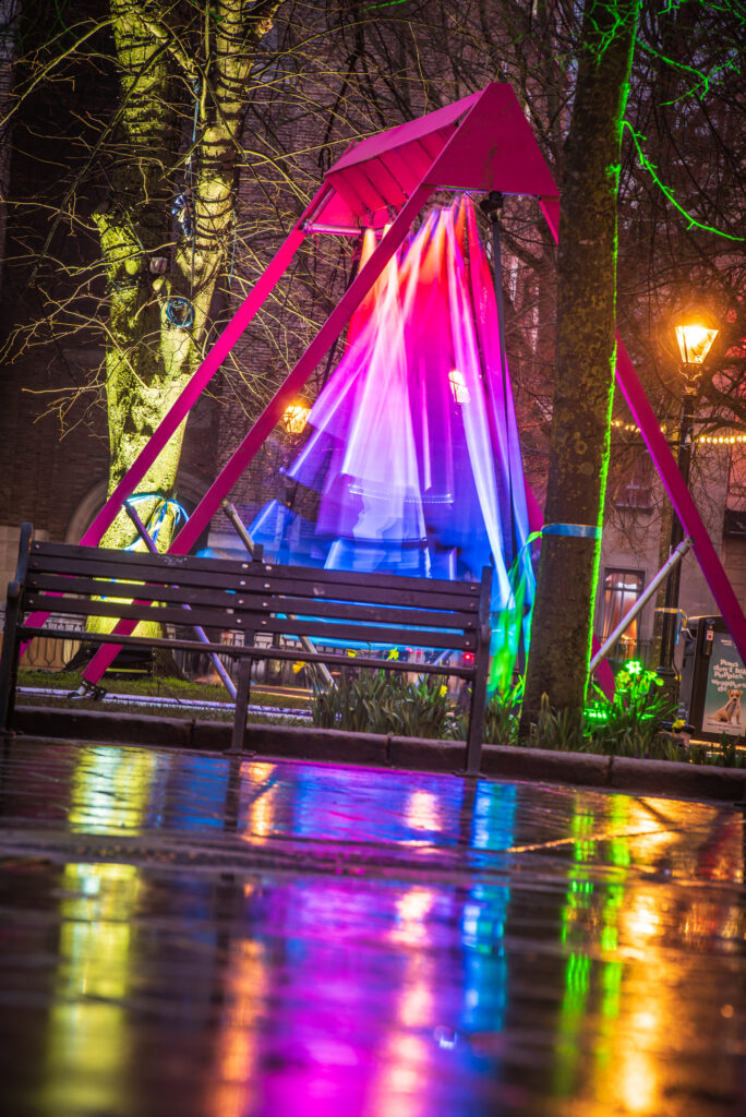 It wouldn’t be Bristol Light Festival without the swings on College Green – photo: Andre Pattenden