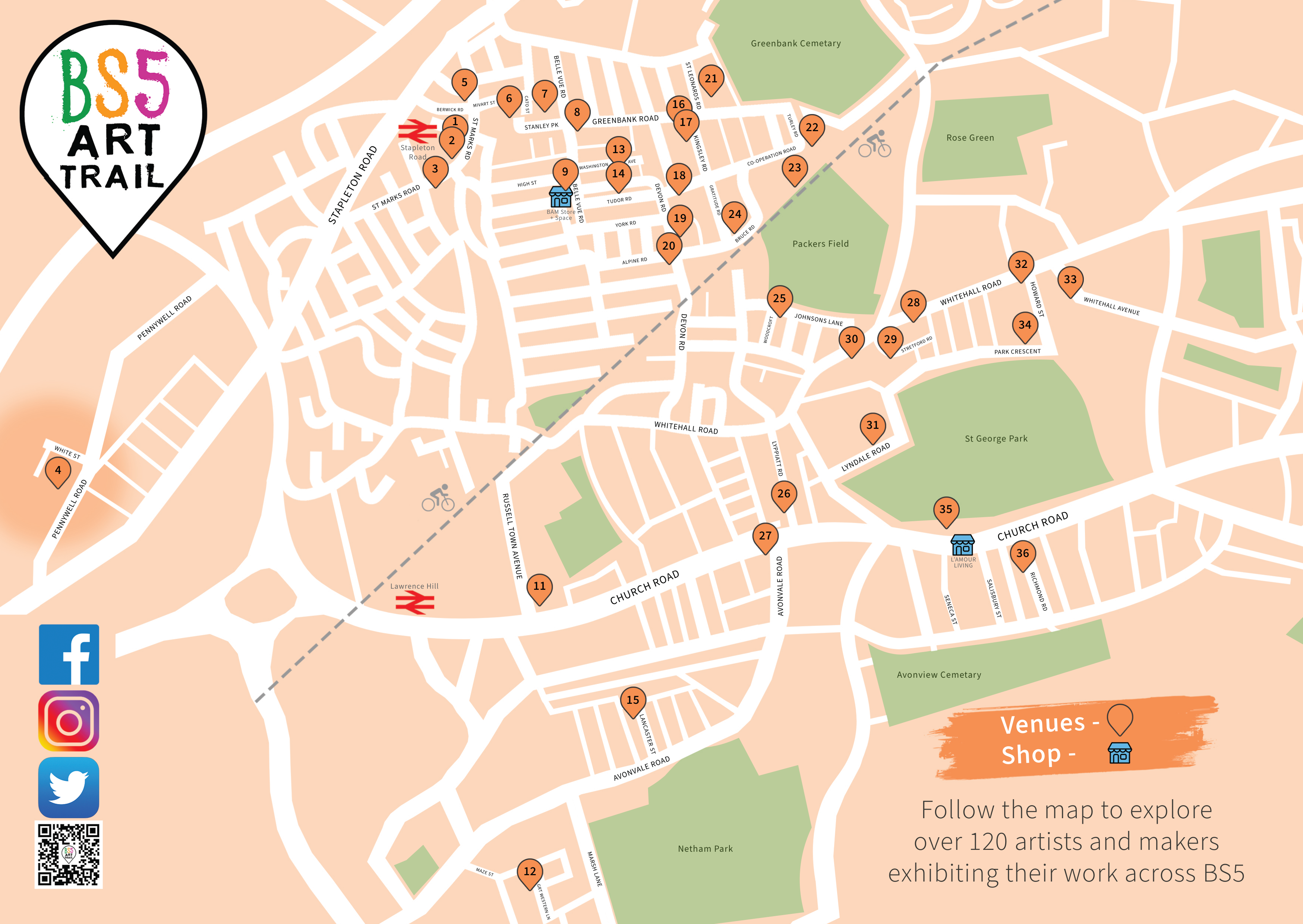 The map showing all the locations of this year’s BS5 Art Trail – photo: BS5 Art Trail