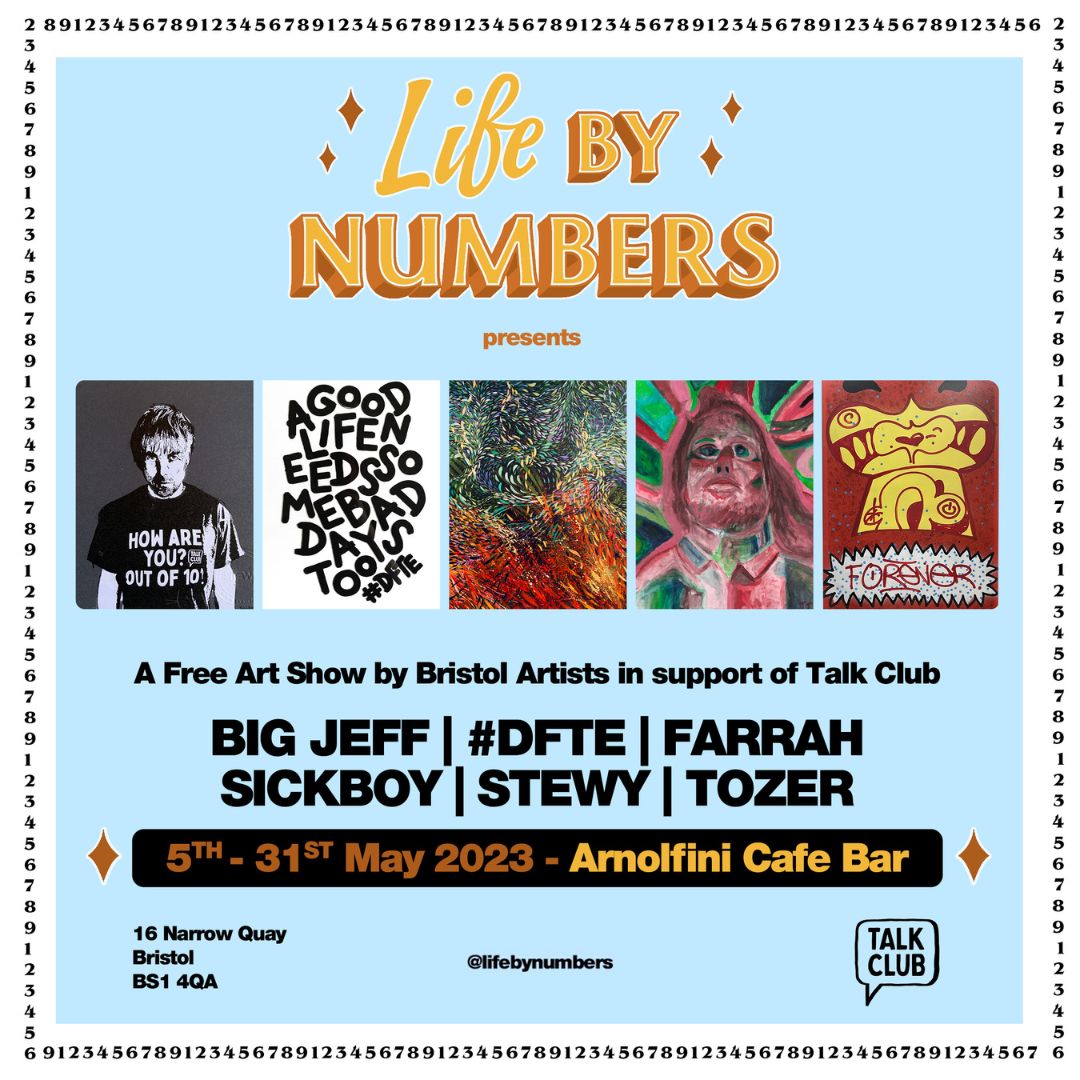 In support of the international men’s mental health charity Talk Club, six Bristol artists will line the walls of the gallery’s cafe/bar space with their work, much of which will be related to mental health, and will invite conversation on the topic.