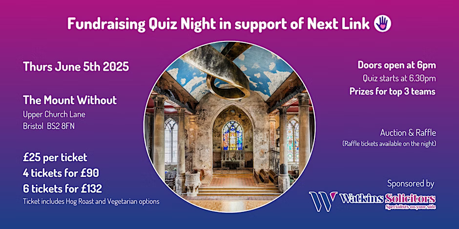 Thursday: Fundraising Charity Quiz Night in Support of Next Link, The Mount Without