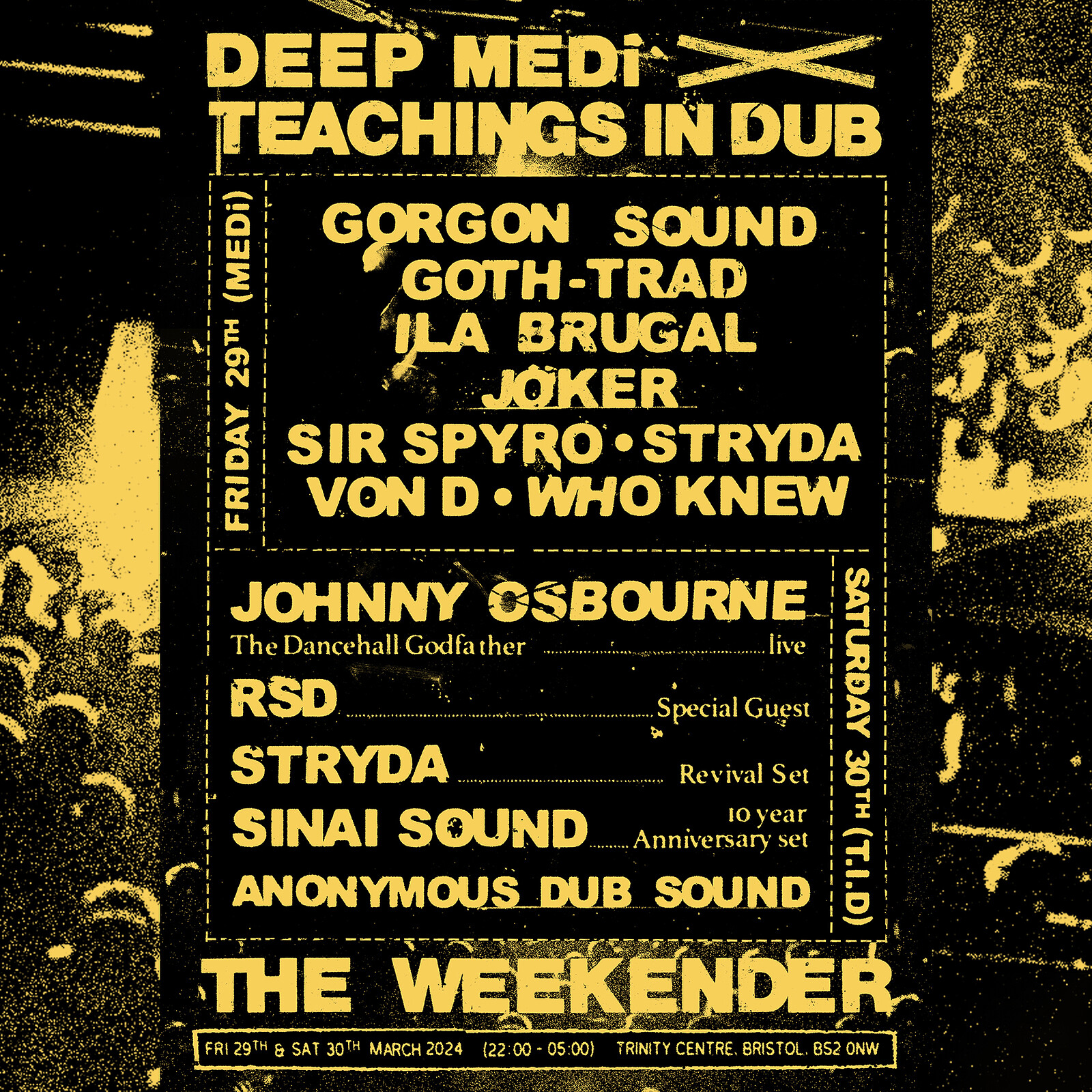 Friday & Saturday: Deep Medi + Teachings in Dub weekender, Trinity Centre
