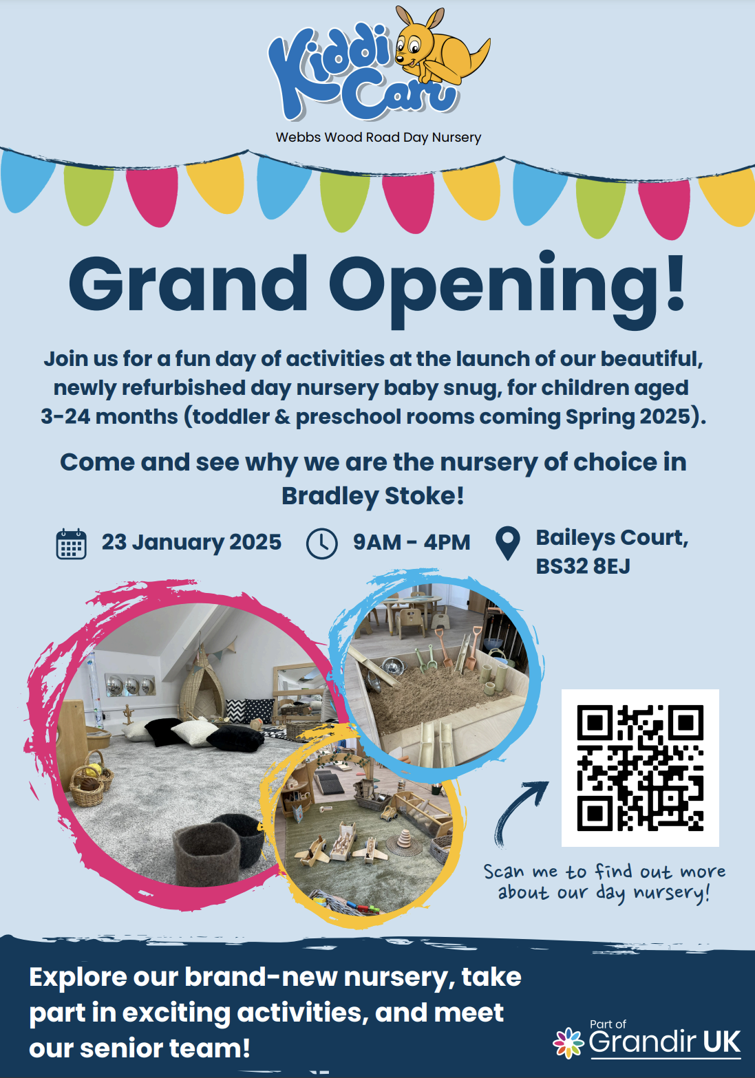 Join us for a fun day of activities at the launch of our beautiful, newly refurbished day nursery baby snug, for children aged 3-24 months (toddler & preschool coming Spring 2025). Join us anytime between 9AM-4PM to see why we are the nursery of choice in Bradley Stoke!