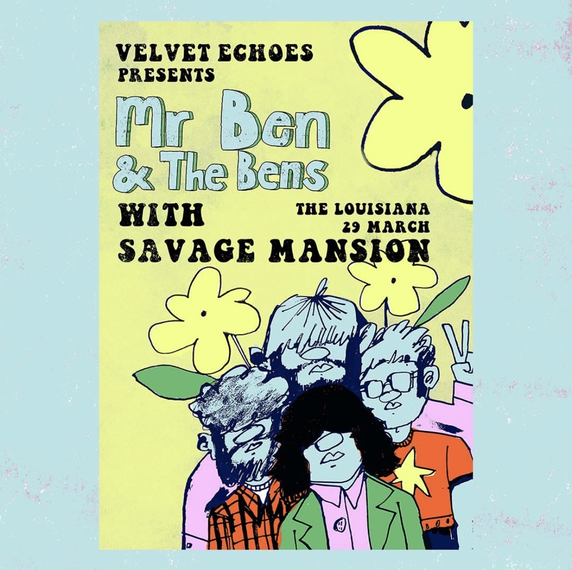 Velvet Echoes proudly presents a spellbinding performance by Mr Ben and the Bens, accompanied by the infectious Garage Rock groovers Savage Mansion at the iconic Louisiana. Join us for a night filled with captivating melodies and energetic beats, making this gig a must-see.