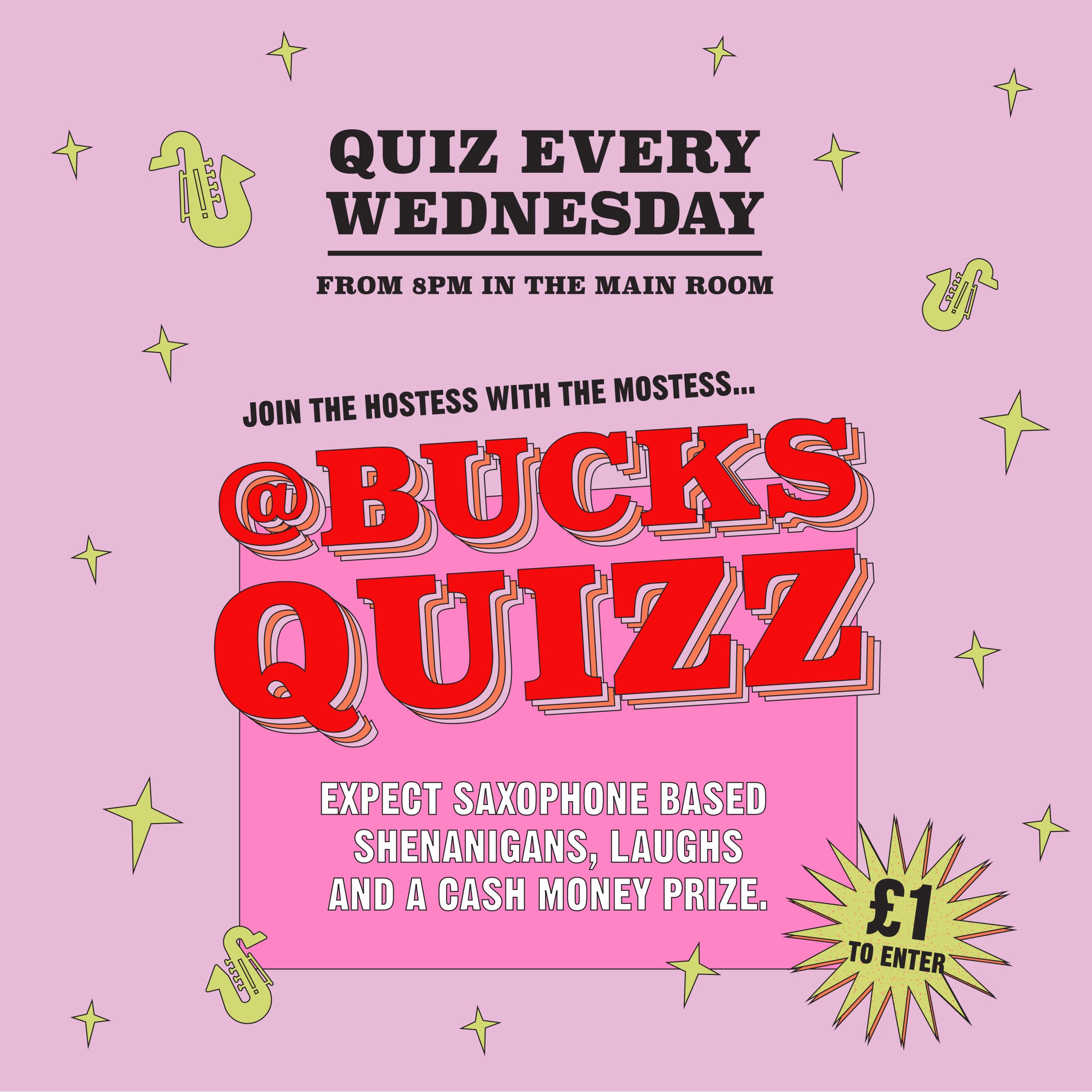 Our first quiz back in the new year! Join our hostess with the mostess @bucksquizz this and every Wednesday for saxophone based shenanigans, laughs and a cash money prize! Only £1 to enter. Maximum 6 to a team. No need to book, simply arrive and enjoy.