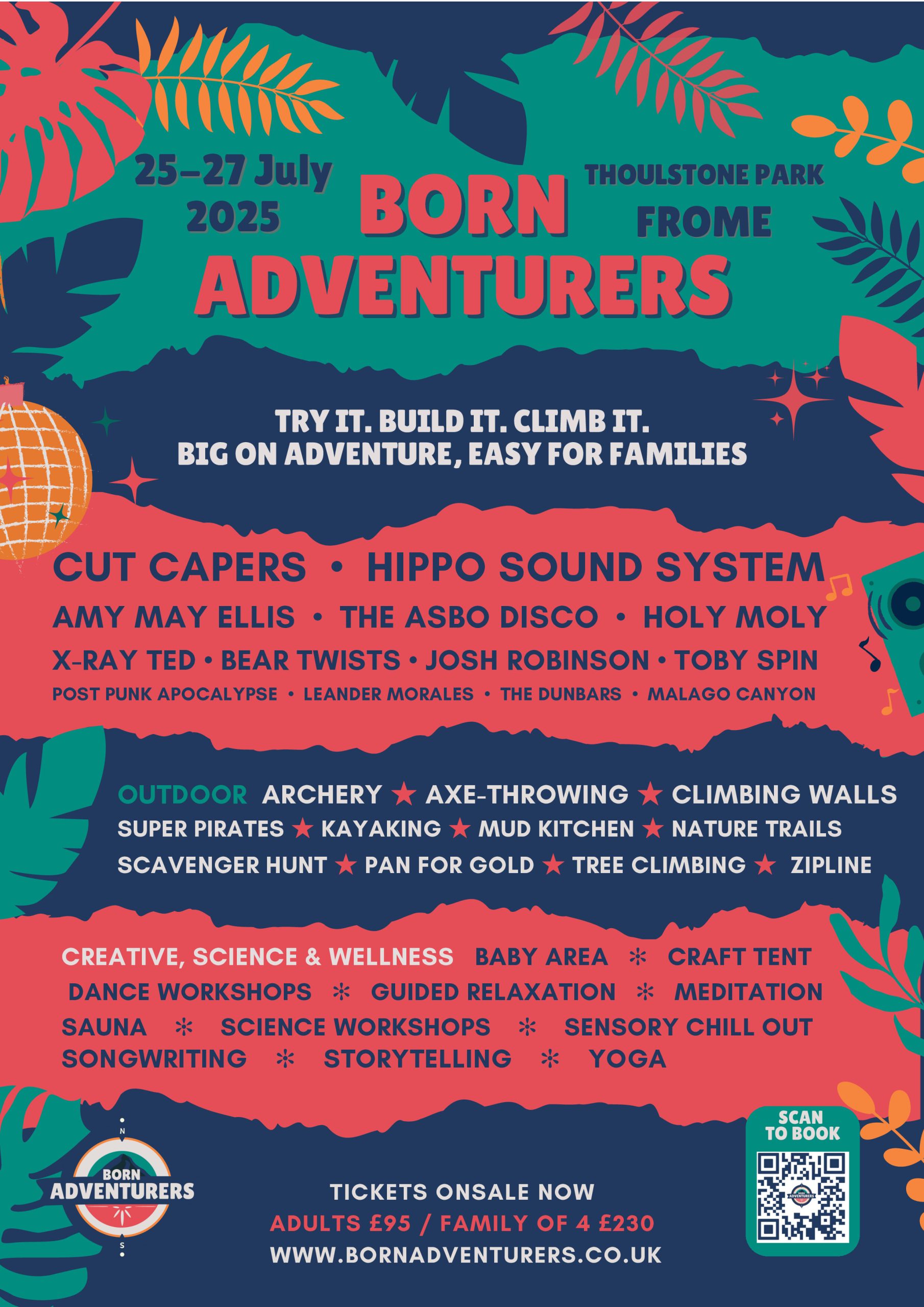 This brand new summer festival is big on adventure and easy for families. Music includes Cut Capers, Hippo Sound System, Amy May Ellis, The ASBO Disco and lots more. Activities like archery, axe throwing, kayaking and zip lining are perfect for kids and teens, while grownups can enjoy a cocktail workshop, sauna and guided meditation.
