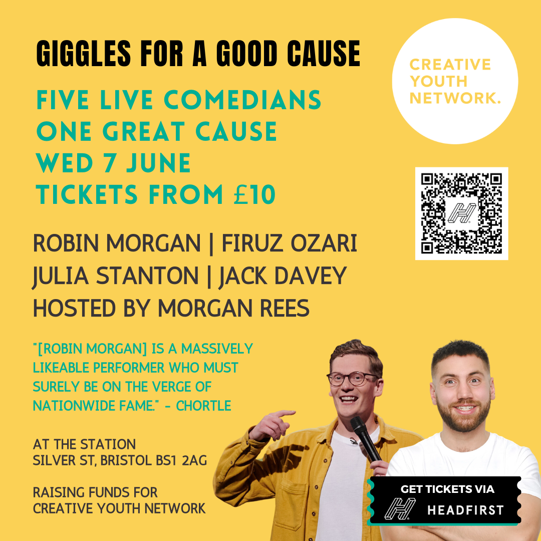 A special comedy night with newcomers to the region’s finest. Fantastic comedians including Robin Morgan and host Morgan Rees. Held in central Bristol’s 1930s fire station for Creative Youth Network.