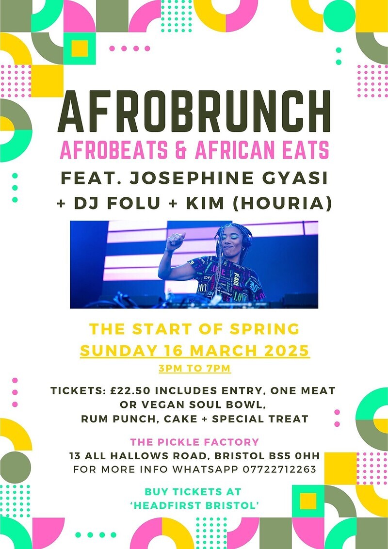 AfroBrunch returns to the Pickle Factory for their first event of the year. Organisers promise Afrobeats, food (meat-eater and vegan friendly) from Pan-African catering company Houria and lively music sets from Josephine Gyasi, Manu Manuganidze and DJ Folu.