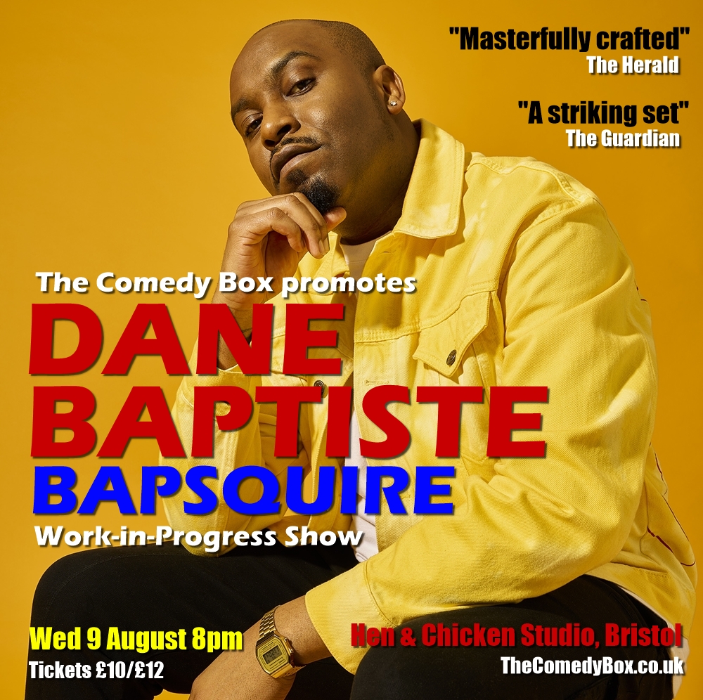 August 9: The Comedy Box promotes: Dane Baptiste: Bapsquire, Hen & Chicken