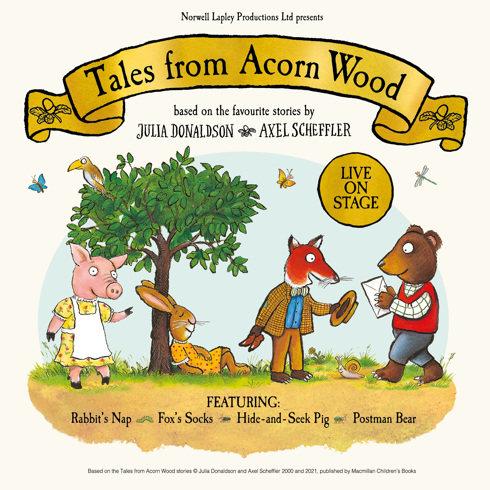 Julia Donaldson and Axel Scheffler’s beloved Tales from Acorn Wood stories are brought to life on stage for the first time in an enchanting lift-the-flap experience by Norwell Lapley Productions. Packed full of toe-tapping songs, puppetry, and all the friends from Acorn Wood, this beautiful show from the team that brought you Dear Zoo Live and Dear Santa promises to be the perfect treat for children of all ages.