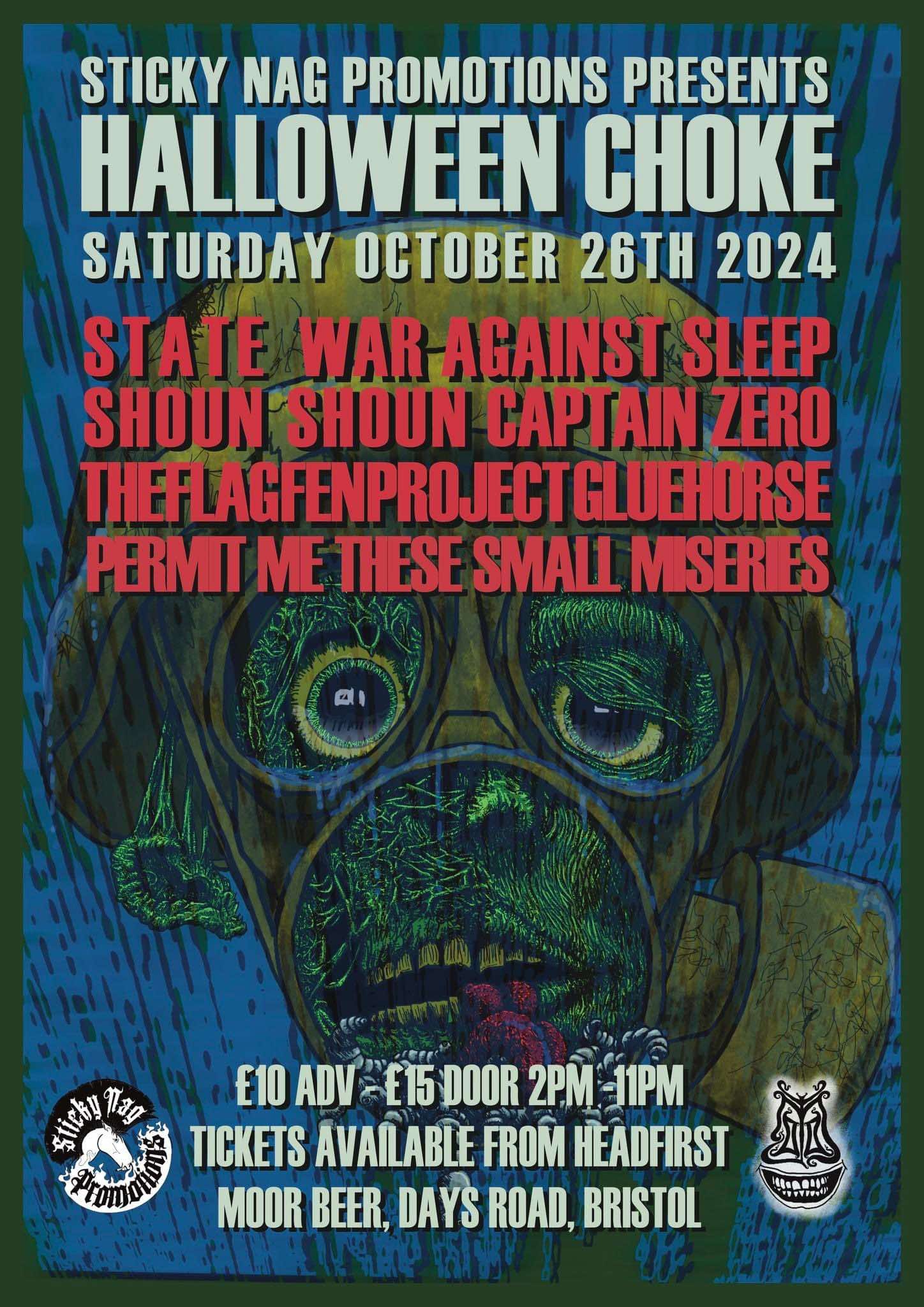 Club Choke was a series of live music nights at Bristol venues from 2002 – 2011. Featuring current projects from Choke veterans, this revival all-dayer presents Shoun Shoun, Gluehorse, The Flag Fen Project, Captain Zero, War Against Sleep, State and Permit Me These Small Miseries. Expect noise, weird pop and leftfield electronics.