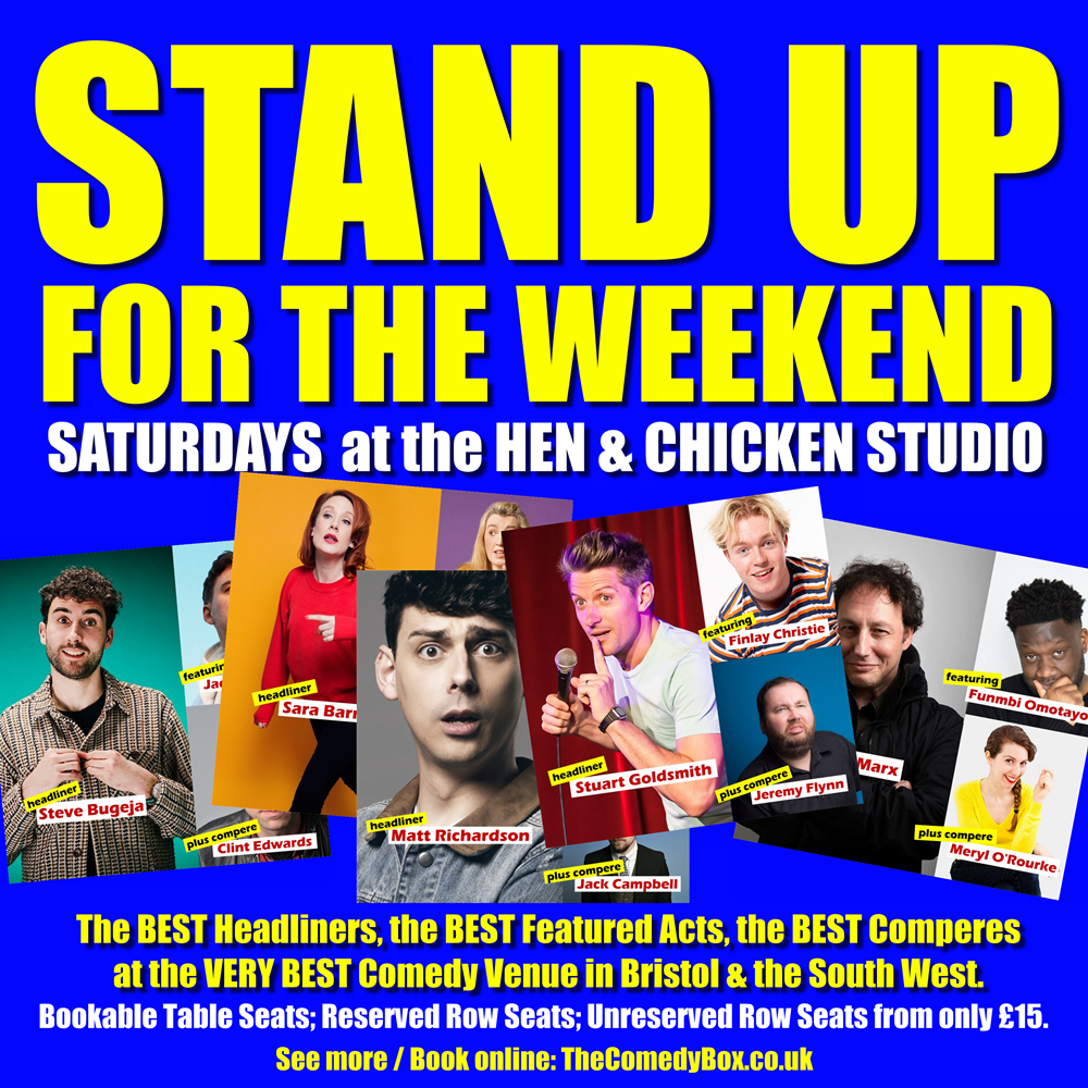 The Comedy Box flagship show STAND UP FOR THE WEEKEND returns from Saturday 2 September at Bristol’s Hen & Chicken Studio.