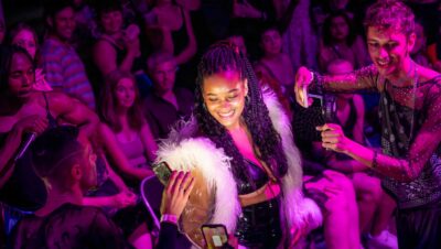 “We’re not sure what Max Legroom will be doing, but it could involve a toilet roll gun or a board covered in old timey car horns,” say Oliver and Roddy of the South Coast’s nine-foot-tall autistic Drag Prince.