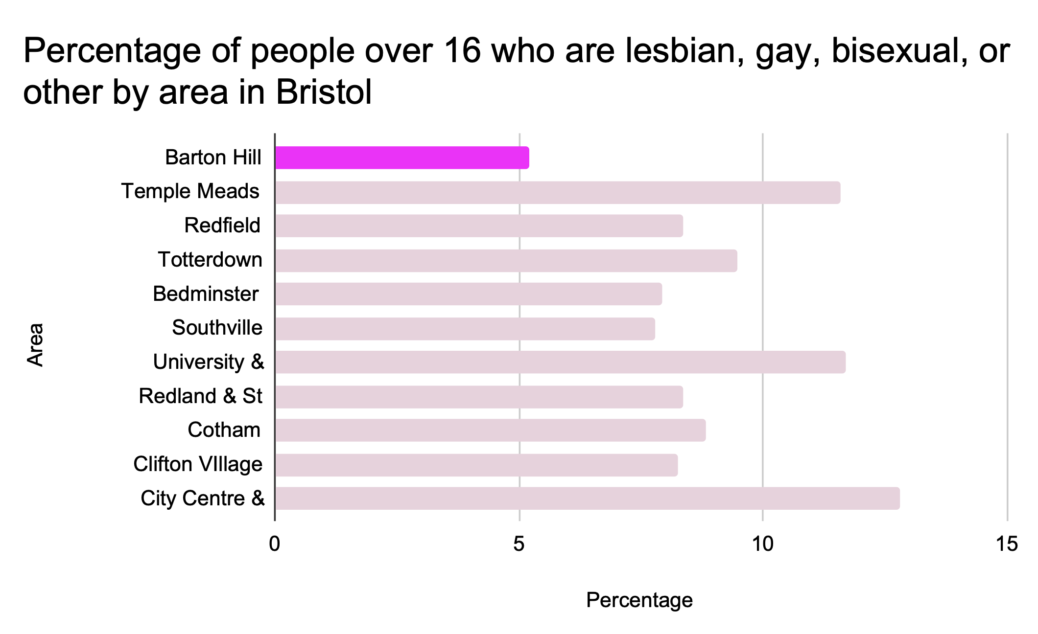 While it is a watershed moment for putting LGBTQ+ people on the map, a community shunned from census data for two centuries, examining hyper-local data through a new interactive map reveals Old Market is no longer a hub for queer people as it, albeit anecdotally, once was. The Centre & Harbourside comes up trumps with 12.8 per cent identifying as lesbian, gay, bisexual or other, while in Barton Hill, the area which encapsulates Old Market, the figure is much lower at 5.2 per cent.