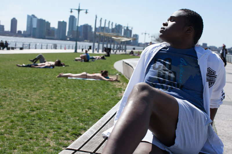“The Pier, it’s where the beauty is, it’s where the ugly is, it’s where the drama is” he says, leaves rustling above his head, the lights of nighttime NYC flickering across the darkened Hudson River behind him.