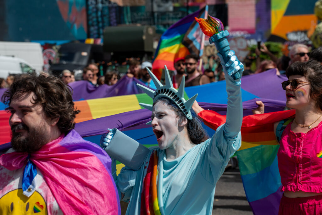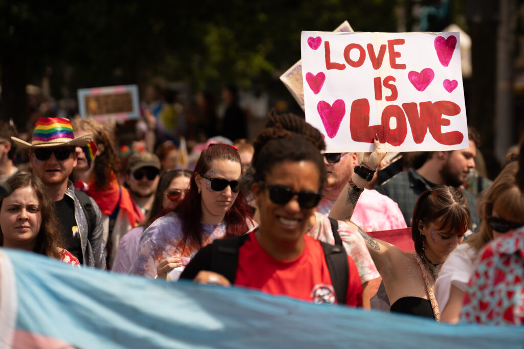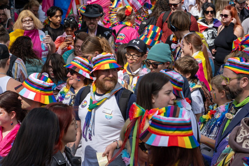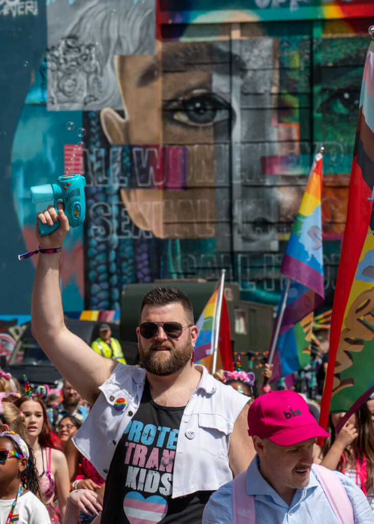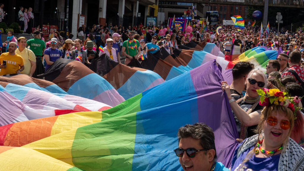 This year’s parade was also the first outing of Pride’s new flag – its biggest ever.